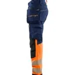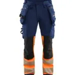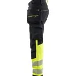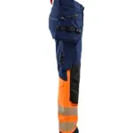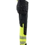 Blåkläder 1125 1648 highvis riipputaskuhousut 4-way stretch. Highvis työhousut erittäin pehmeää ja neljään suuntaan joustavaa materiaalia antaa maksimaalista mukavuutta ja näkyvyyttä, kun sitä eniten tarvitaan. Housuissa on katkonaiset heijastimet, irralliset riipputaskut, korkea vyötärö takana, tummat alueet lialle altistuvilla alueilla sekä tuuletusaukot takana ja polvissa. Polvisuojataskut mukavaa CORDURA® stretch -materiaalia. Naisten malli tuote 7025.