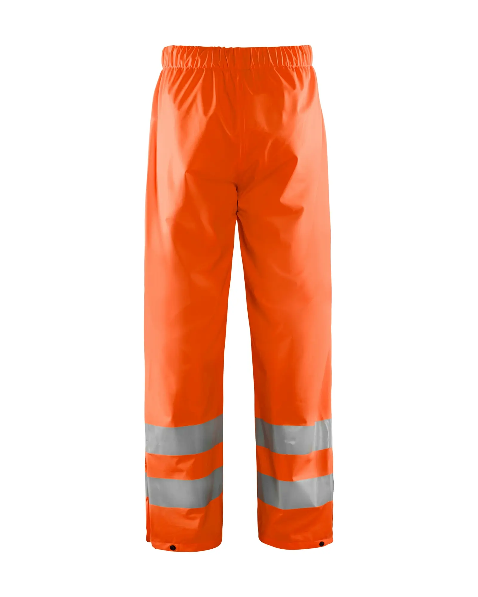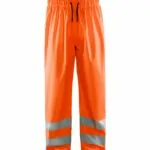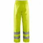 Blåkläder 1384 2000 Highvis sadehousut, TASO 1. Sadehousut huomiovärillä työtehtäviin, jotka vaativat kevyttä ja pehmeää sadevaatetta. Tuulen- ja vedenpitävä, liimatut saumat. Joustava resori ja kiristysnauha vyötäröllä, säädettävät lahkeensuut neppareilla.
