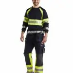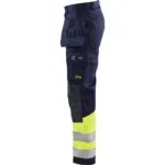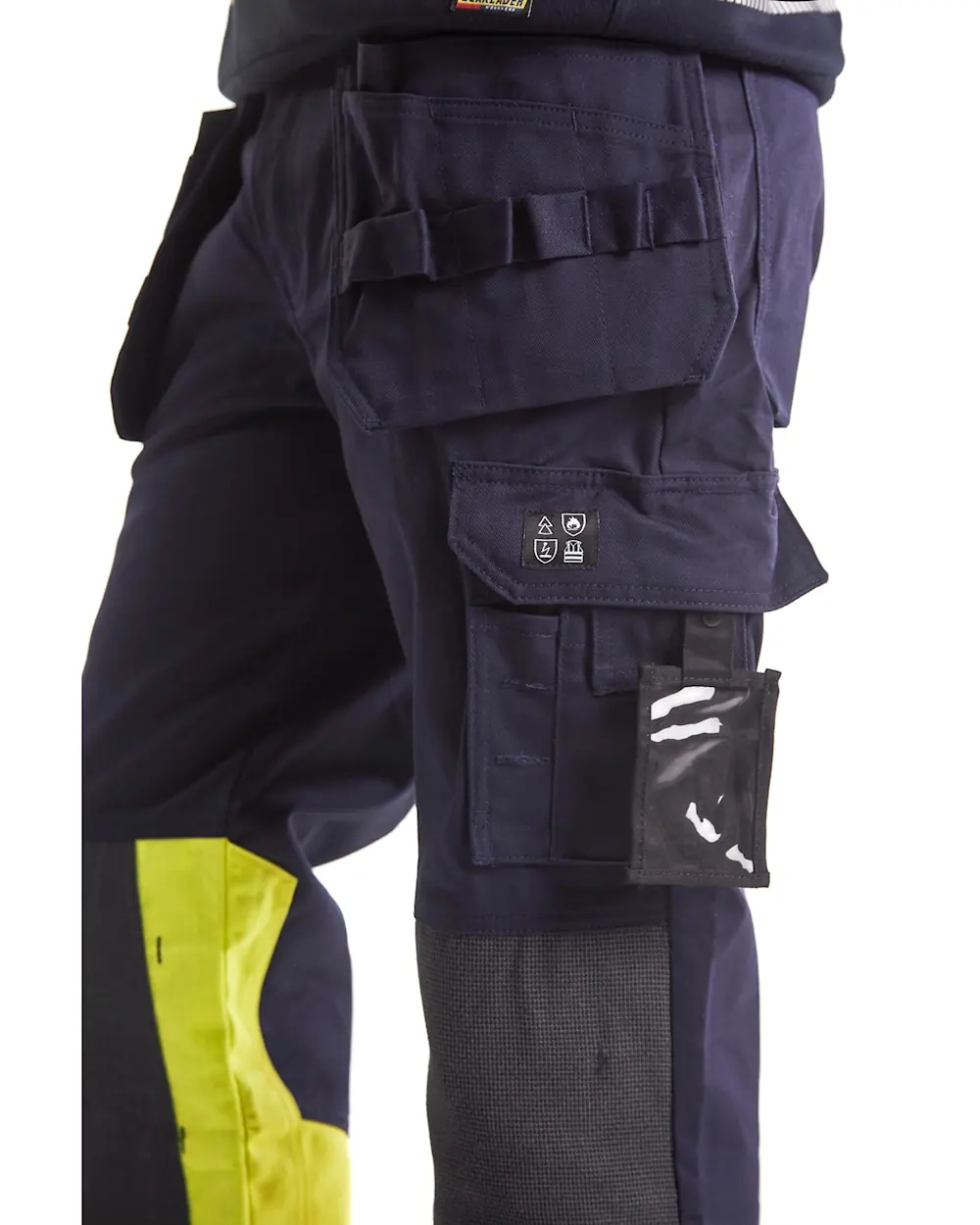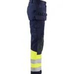 Blåkläder 1479 1514 multinorm riipputaskuhousut. Multinorm riipputaskuhousut tarjoavat äärimmäisen suojan vaativissa työolosuhteissa. Pitkälle kehitetyt housut kiinteillä riipputaskuilla, kulutusta kestävällä materiaalilla ja CORDURA®/Kevlar® -vahvistetuilla polvisuojataskuilla, joihin polvisuojat voi asettaa kahteen eri tasoon. Teollisuuspesu. Sertifioitu EN ISO 20471 luokka 1. EN 1149-5, IEC 61482-2 luokka 1. EN ISO 11612 A1, A2, B1, C1, F1. ATPV: 11,0 cal/cm², HAF: 82,0%.