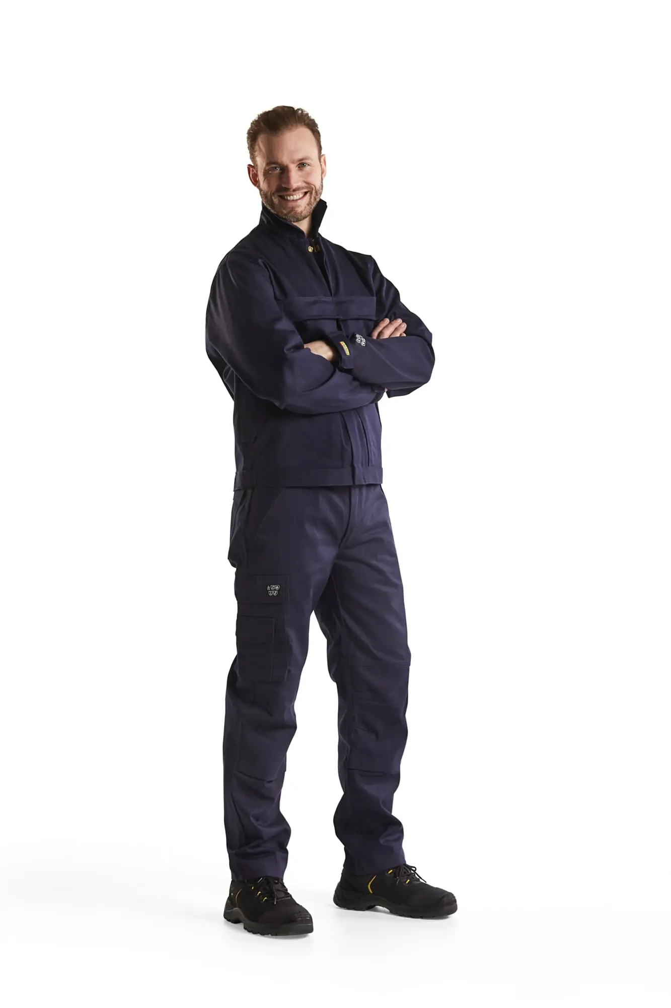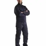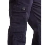 Blåkläder 1724 1516 palosuojatut housut. Kestävät palosuojatut housut säädettävällä vyötäröllä. Käytännölliset läpälliset taskut. Teollisuuspesu. Sertifioitu EN 1149-5, IEC 61482-2 luokka 1, EN ISO 11611 luokka 1 A1, EN ISO 11612 A1, B1, C1, E1, F1, EN 13034 PB [6] mukaan. ATPV: 16,0 cal/cm², HAF: 82,0%.