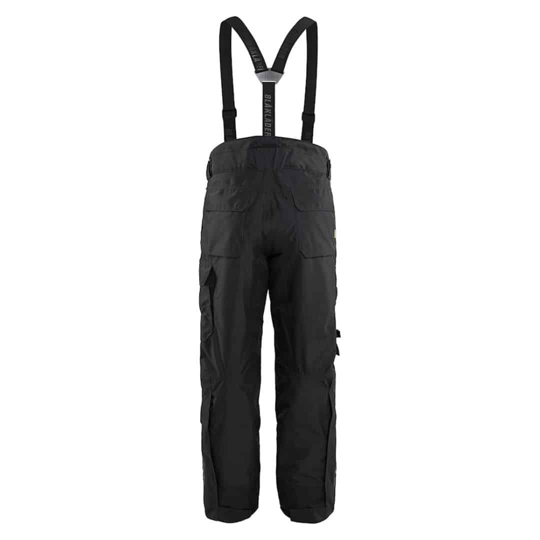 Blåkläder 1810 1977 talvihousut. Tuulen- ja vedenpitävissä talvihousuissa pysyt lämpimänä talvipakkasella. Teipatut saumat ja tikkivuori. Fleecevuoratut taskut. Korotettu selkäosa suojaa tehokkaasti kylmältä. Vetoketjut ja lumilukot lahkeensuissa sekä irrotettavat henkselit. Heijastimet valituissa kohdissa parantamassa näkyvyyttä.