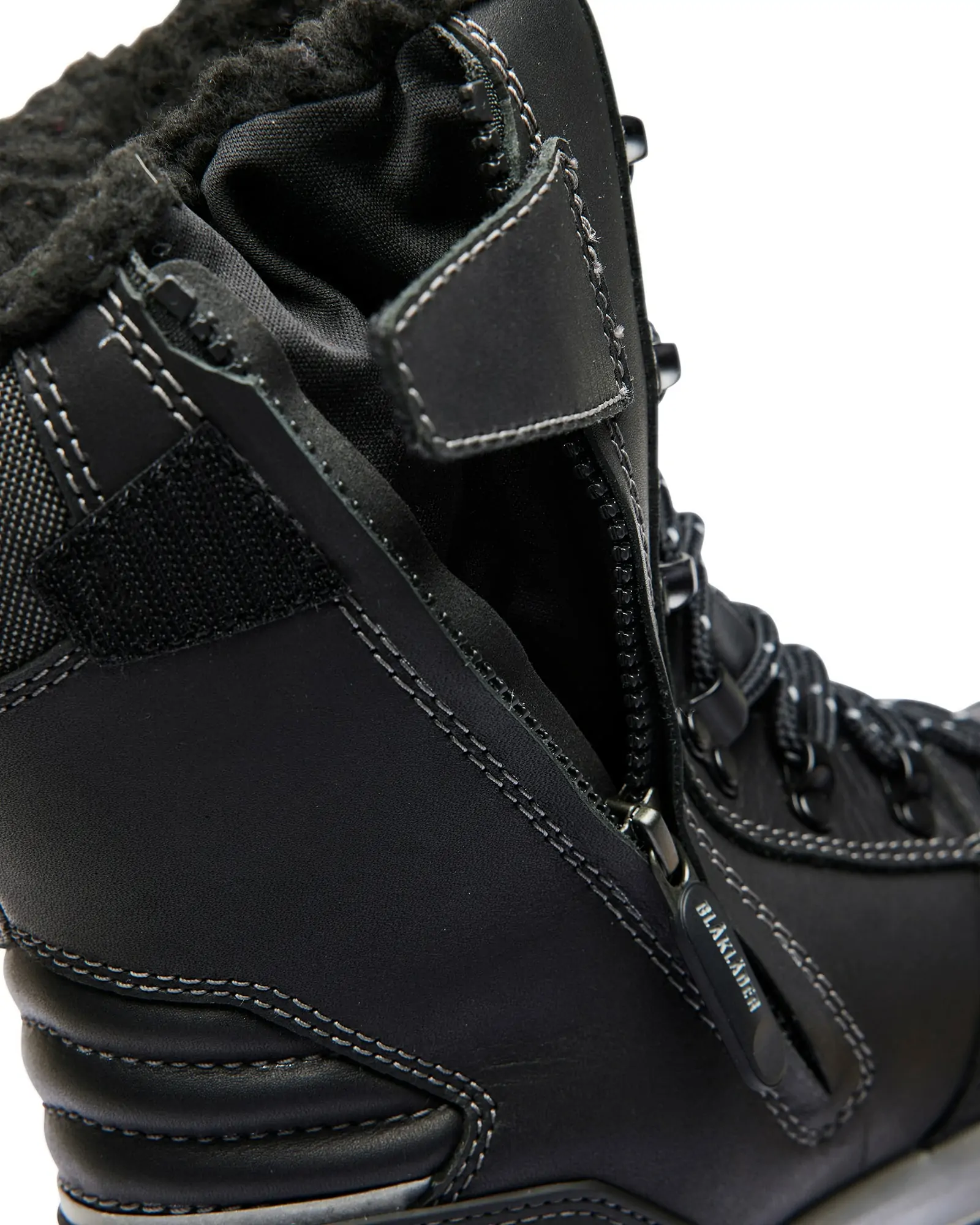 Blåkläder 2456 0000 ELITE -mallistoon kuuluva, korkeavartinen nahkainen talvikenkä villa-/polyesterivuorella, joka pitää jalan lämpimänä ja kuivana kylmässä säässä. Tekstiilinen naulaanastumissuoja, alumiininen varvassuoja ja TPU-vahvistettu kantapää- ja varvassuoja tekevät kengästä erittäin kestävän. Kengän ulkopohja on kestävää nitriilikumia. Lämpimällä vuorella varustettu pohjallinen on anatomisesti suunniteltua pehmeää PU-materiaalia. Tämä turvakenkä soveltuu parhaiten rakennus-, kuljetus-, huolto- ja korjausalalle. Naisten lesti koossa 35-39.