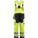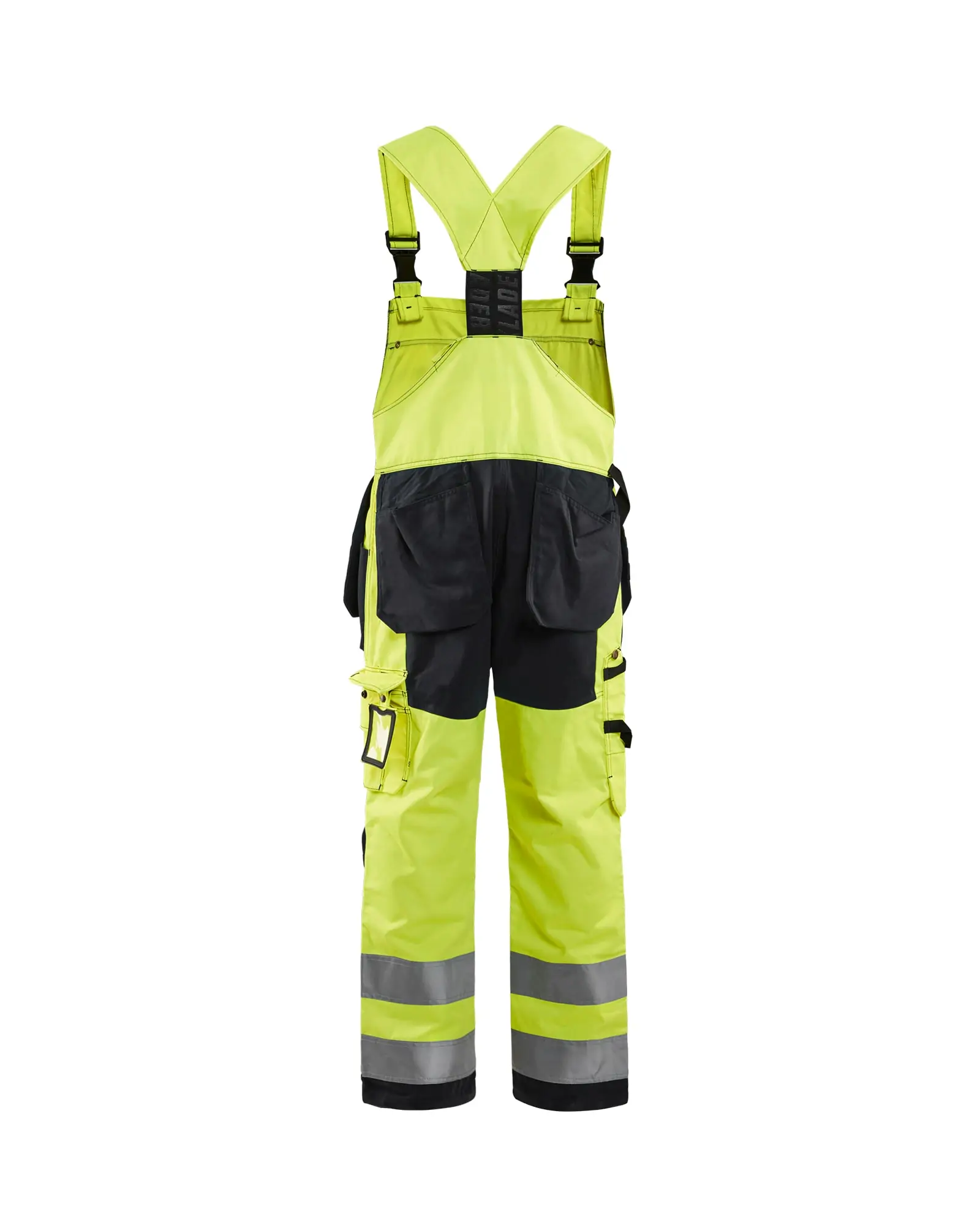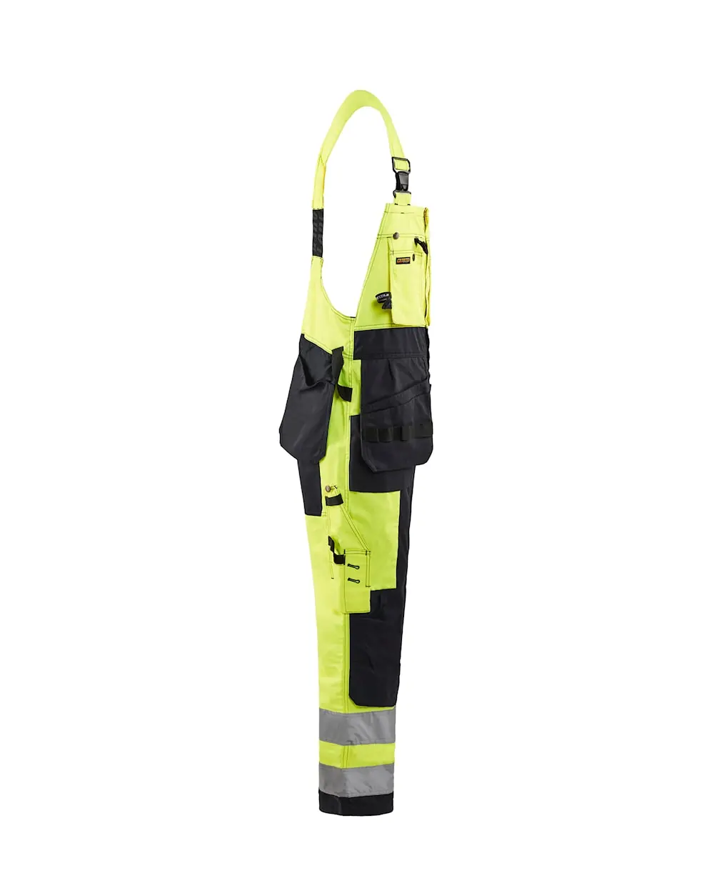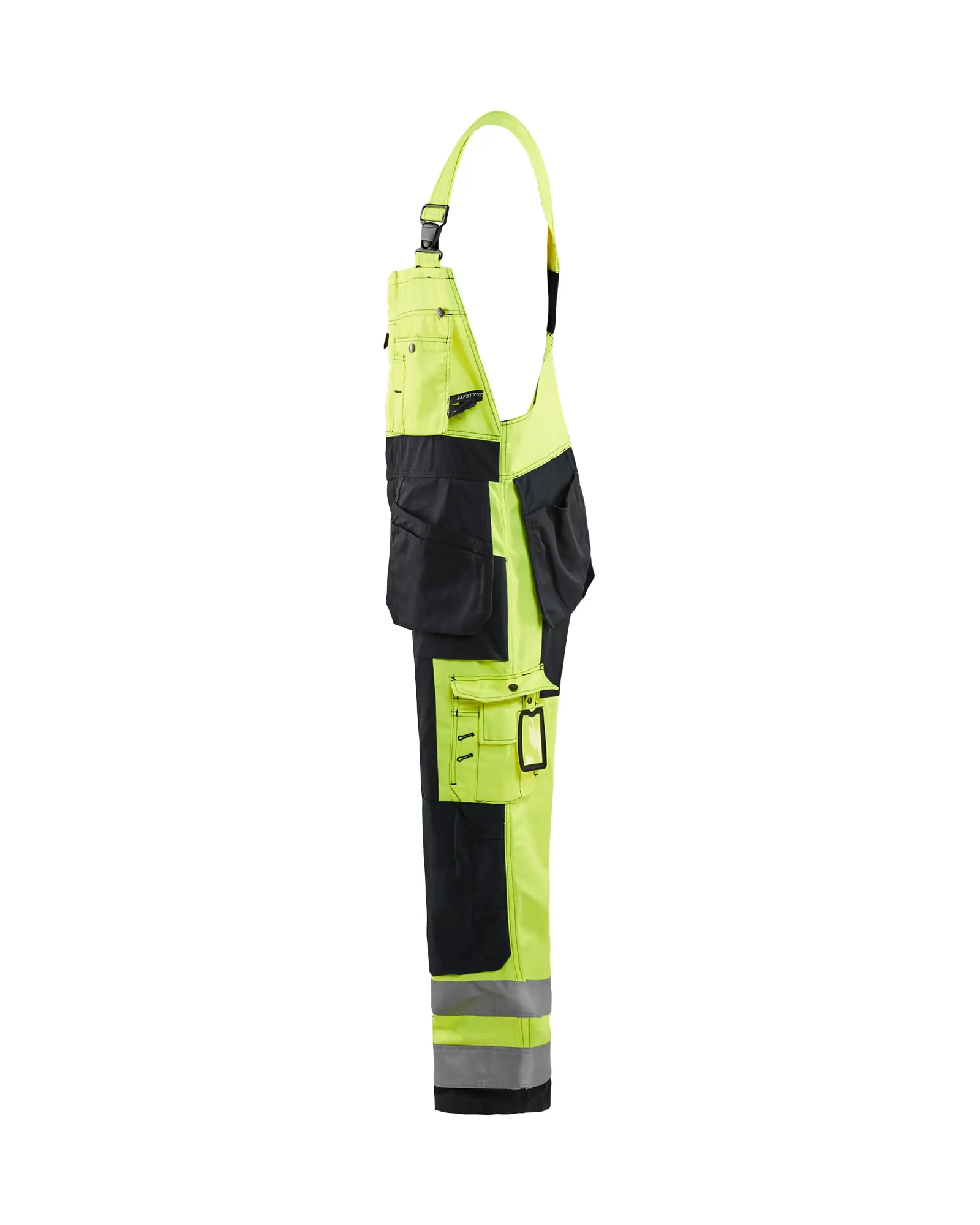 Blåkläder 2603 1860 highvis lappuhaalari. Riipputaskut edessä ja takana, Riipputaskut – voidaan pujottaa palje-etutaskujen sisään. Mittatasku, jossa puukonpidike ja kynätasku. 70 mm leveät heijastimet, Heijastimet lahkeiden ympärillä.