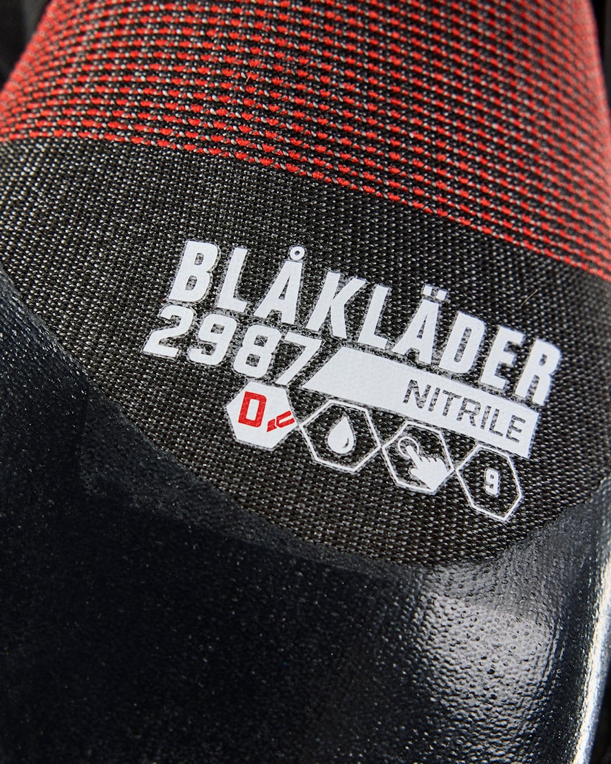 Blåkläder 29871421 viiltosuojahanskat D.Ohut, joustava ja nestetiivis viiltosuojakäsine, jossa on D-tason suoja ja kosketustoiminto. Hanskan koko pinta on päällystetty nitriilipinnoitteella, mikä tekee siitä nestetiiviin ja soveltuvan kosteisiin ja öljyisiin ympäristöihin, joissa on viiltojen riski. Ei sisällä metallia eikä lasikuitua. Kosketuslämmönkesto tasolla 1.