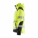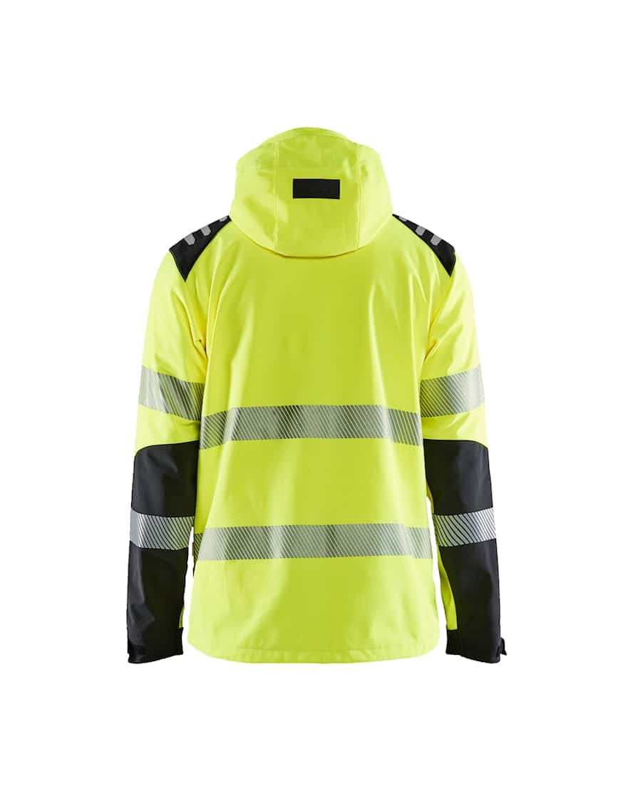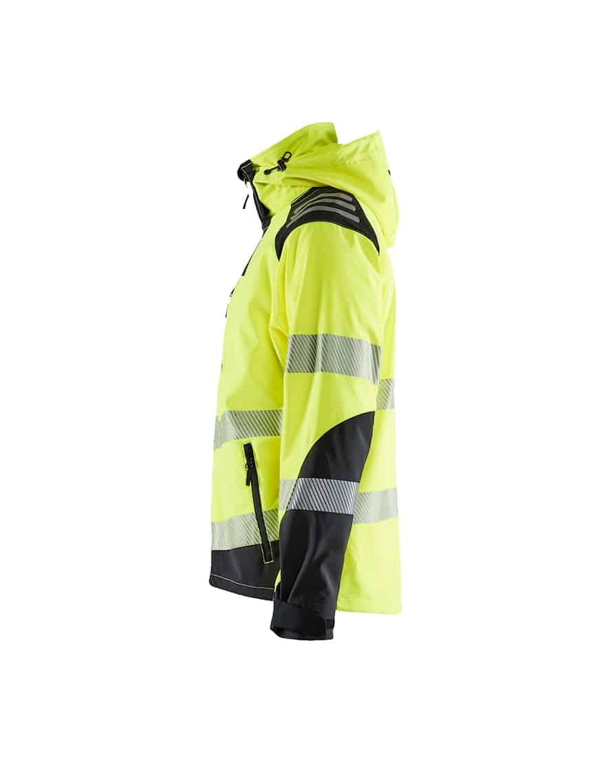 Blåkläder 4491 2513 highvis softshelltakki. Kevyt softshelltakki, joka materiaalinsa ansiosta on erittäin mukava, pehmeä ja mukailee liikkeitä hyvin. Takissa yhdistyy keveys ja joustavuus työvaatteen kestävyyteen. Kangas on lisäksi myös tuulen- ja vedenpitävää. Hupun voi tarvittaessa irrottaa. Useita vetoketjullisia taskuja sekä tuulelta suojaava korkea kaulus.