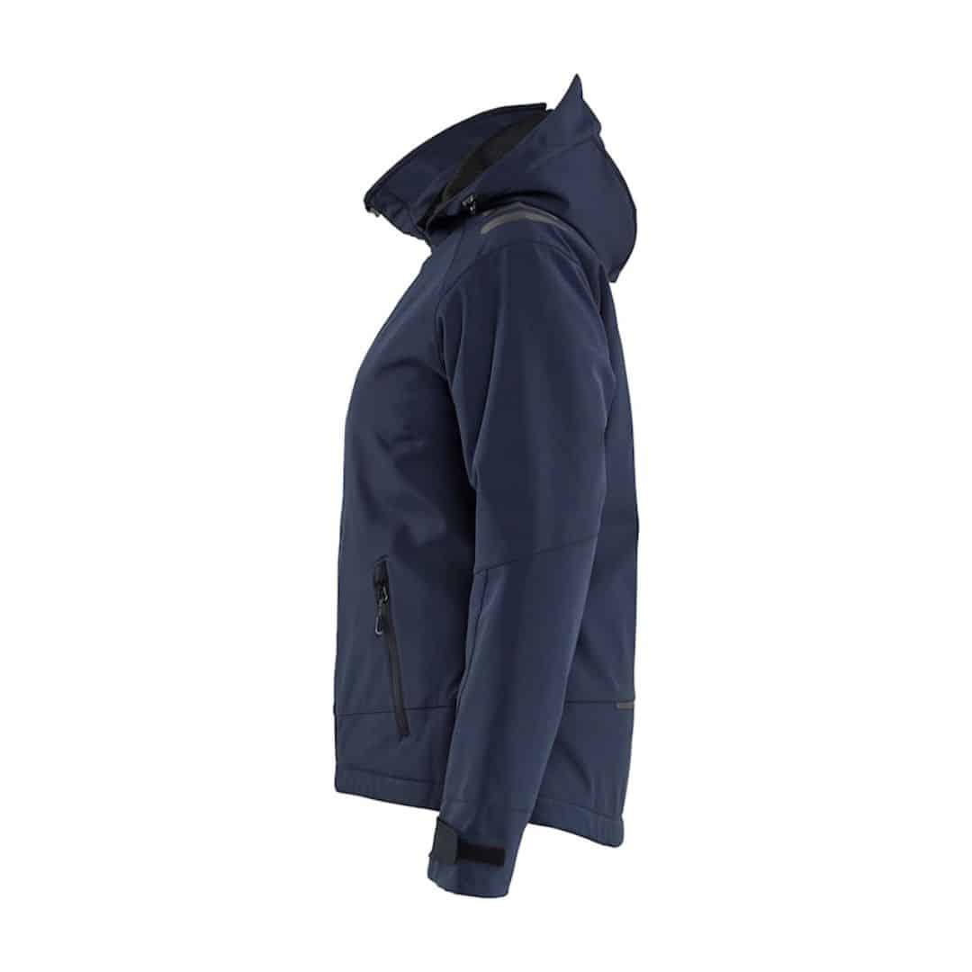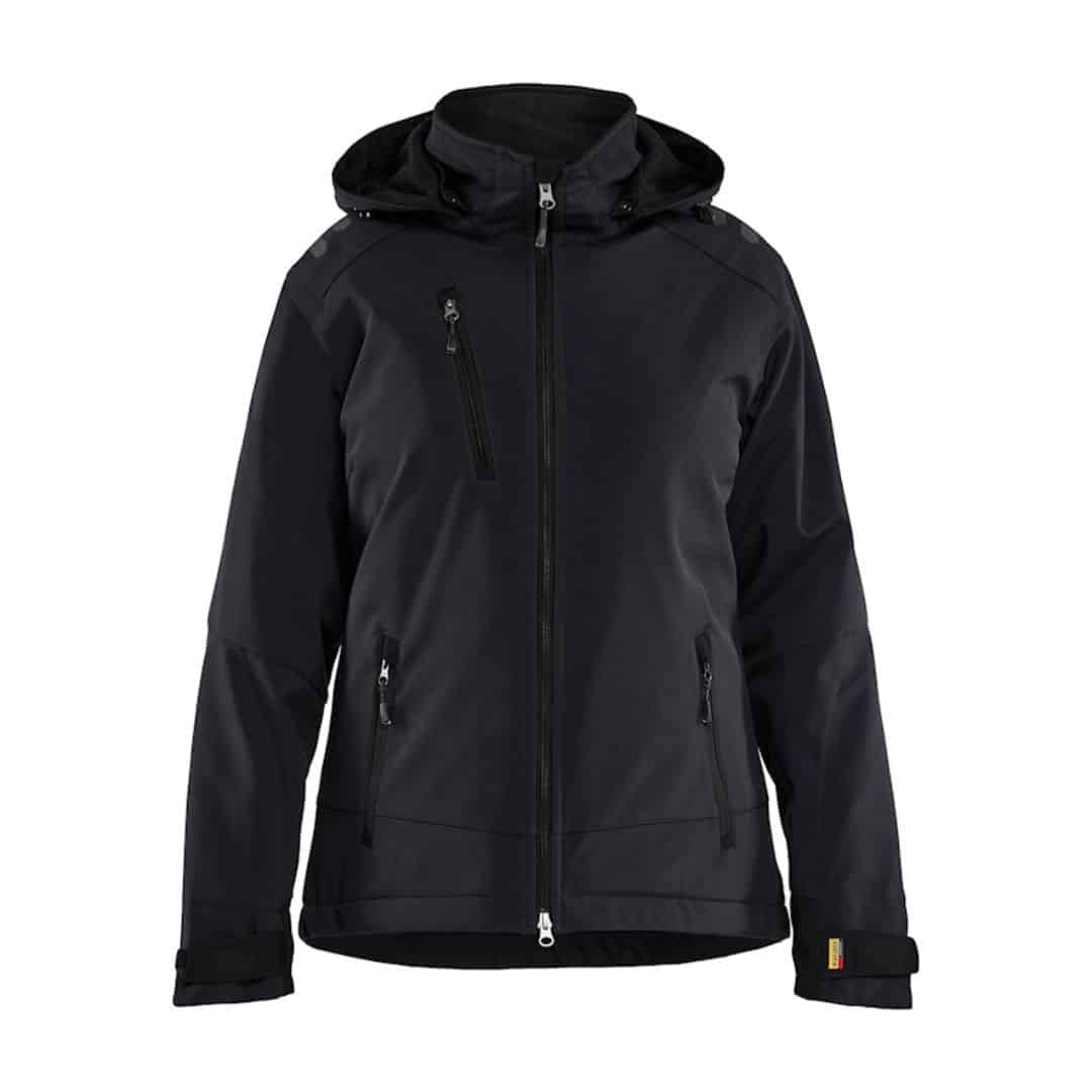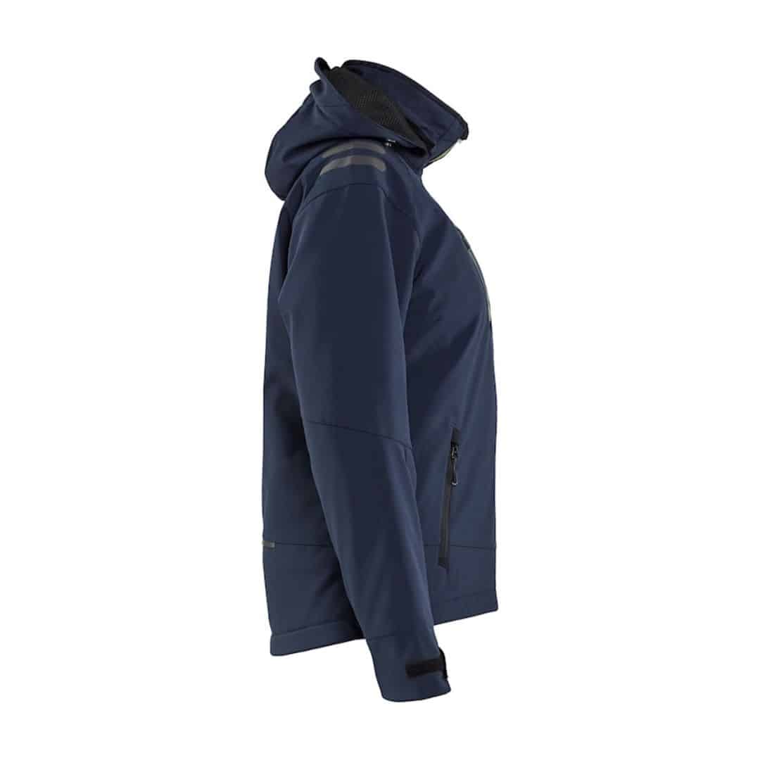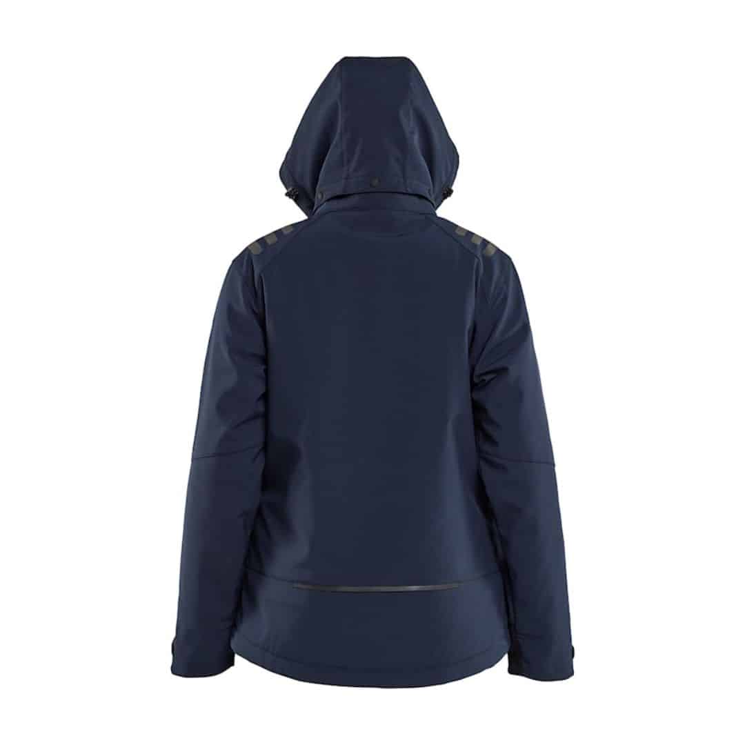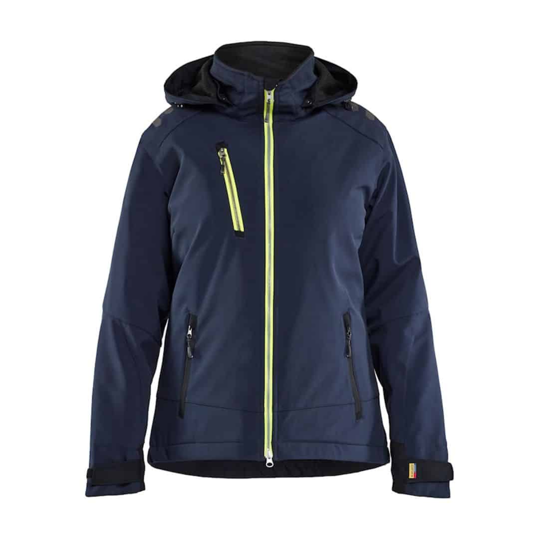 Blåkläder 4751 2513 naisten talvitakki softshell kevyellä vuorella. Syys- ja talvitakki kevyellä vuorella. Takissa on irrotettava ja säädettävä huppu. Valmistettu joustavasta tuulen- että vedenpitävästä  materiaalista, joka tarjoaa maksimaalisen liikkuvuuden. Tummat heijastavat yksityiskohdat olkapäillä ja selässä. Saatavana myös miesten mallina 4750.