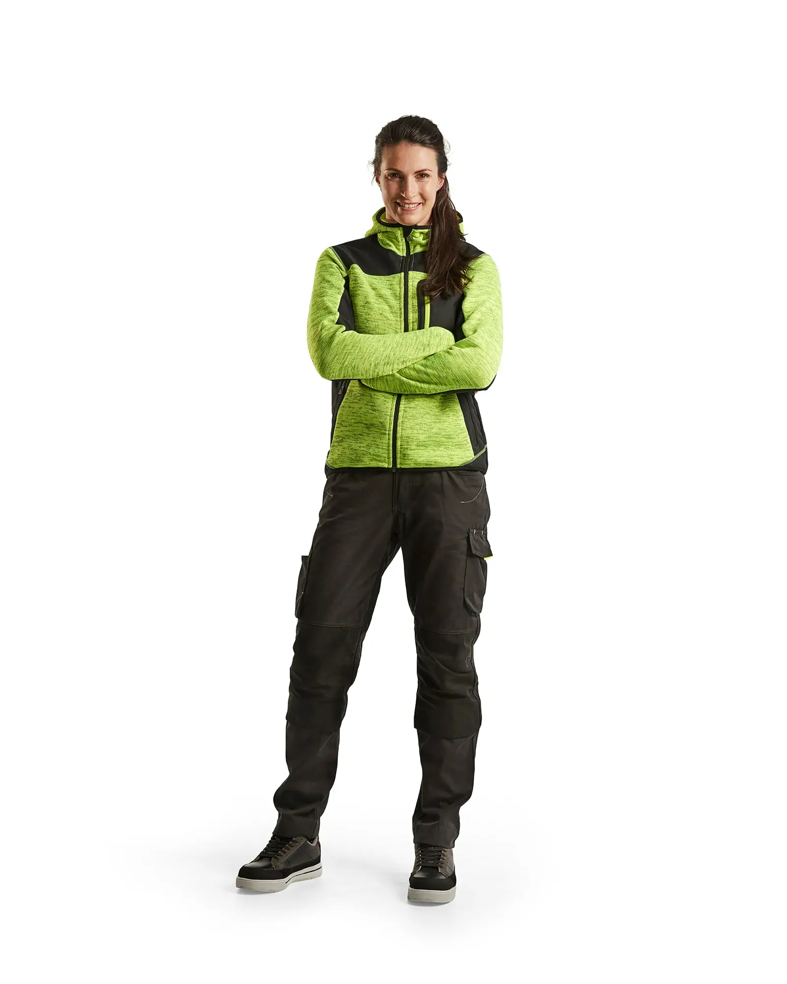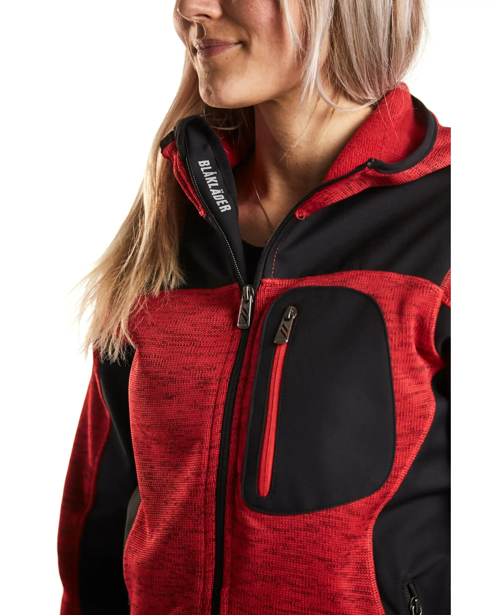 Blåkläder naisten neulottu softshelltakki. Neulottu takki hupulla, nuorekkaalla ilmeellä ja mukavan tuntuisella materiaalilla. Kontrastivärinen vetoketju ja softshell -vahvistukset kulutusalttiissa kohdissa lisäämässä kestävyyttä. Sopii erinomaisesti niin työhön kuin vapaa-aikaankin. Saatavilla myös miesten malli, tuote 4930.