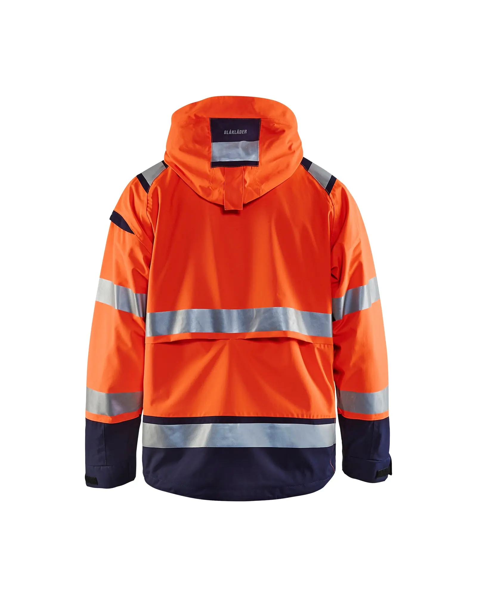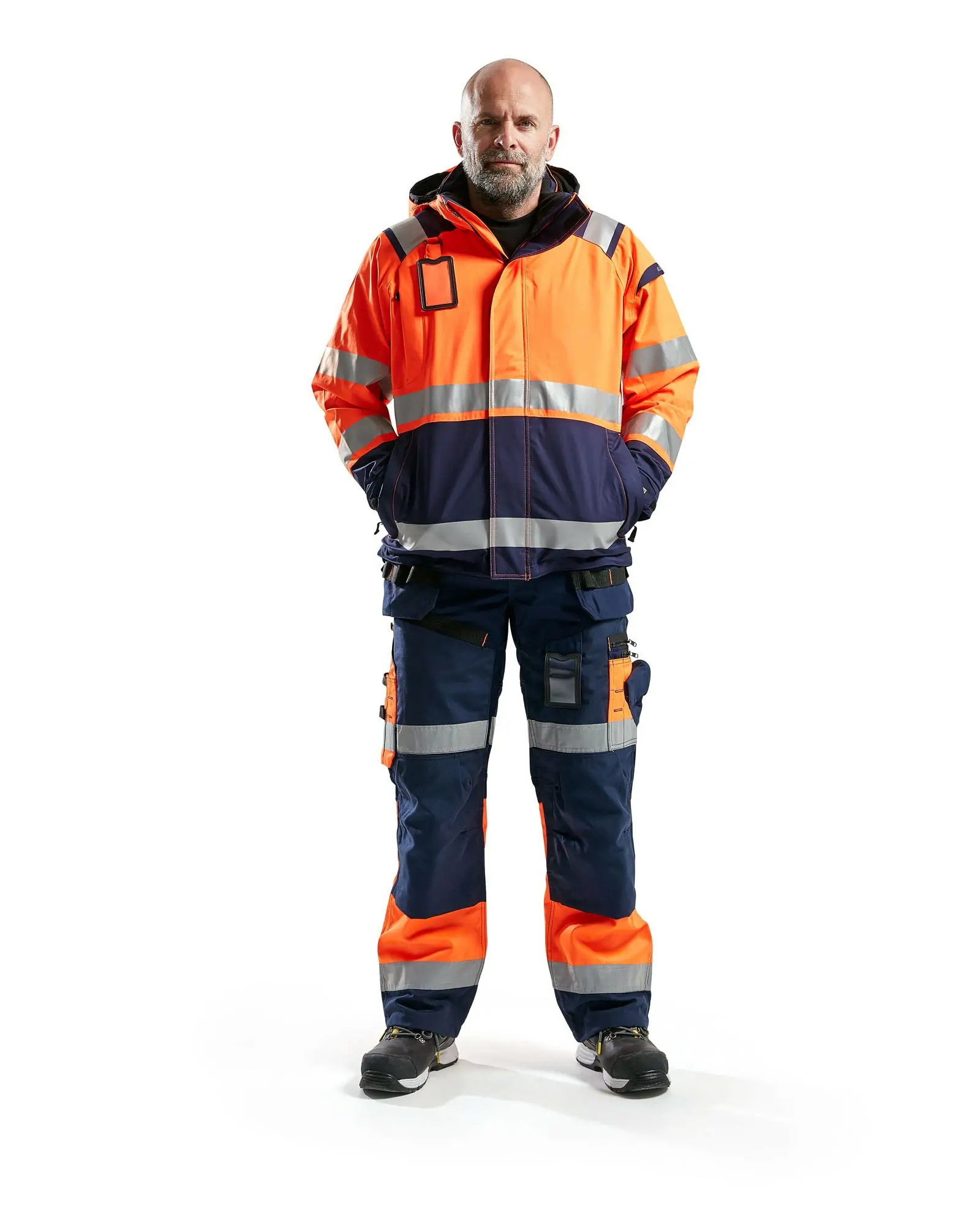 Blåkläder 4987 1987 highvis kuoritakki. Todella pehmeä, tuulen- ja vedenpitävä highvis kuoritakki teipatuilla saumoilla. Heijastimet on kiinnitetty painamalla mukavuuden lisäämiseksi. Verkkovuorellinen kuoritakki sopii niin syksyyn kuin kevääseenkin. Kylmemmällä säällä takki toimii erinomaisesti, kun alle lisää lämmittävän välikerroksen vaatteen.