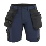 Blåkläder 7124 1645 naisten riipputaskushortsit 4-way stretch. Naisten riipputaskushortsit hieman ohuemmasta neljään suuntaaan joustavasta kankaasta, joka todella tarjoaa äärimmäisen mukavuuden. Irrotettavat riipputaskut, palkeelliset takataskut, mittatasku ja lenkki vasaran pidikkeelle sekä vasemmalla että oikealla puolella. Saatavana myös miesten mallina 1702.