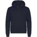Clique 0201031 Miami Hoody. Unisex-mallinen huppari puuvillan ja kierrätetyn polyesterin sekoituksesta. Hupussa kiristysnyöri, edessä iso tasku. Joustava resori helmassa ja hihansuissa. Niskalappu on helposti poistettavissa, joten se voidaan haluttaessa vaihtaa. Pehmeä stabilisoitu kangas, joten hupparia voidaan pestä paljon ilman että se nyppyyntyy.
