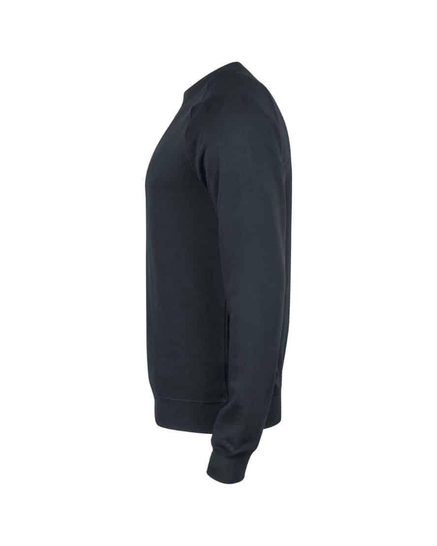Clique 021000 Premium OC Roundneck. Luomupuuvillasta ja kierrätetystä polyesterisekoitteesta valmistettu laadukas collegepaita, jossa pyöreä kaula-aukko. Raglanhihat ja edessä flatlock-koristesaumat. Sivussa vetoketjullinen piilotasku. Collegeneulosta, harjaamaton sisäpuoli, vahvistettu niskasauma ja 1×1-resorit hihansuissa ja helmassa. Kätevä ratkaisu kuulokkeille.