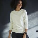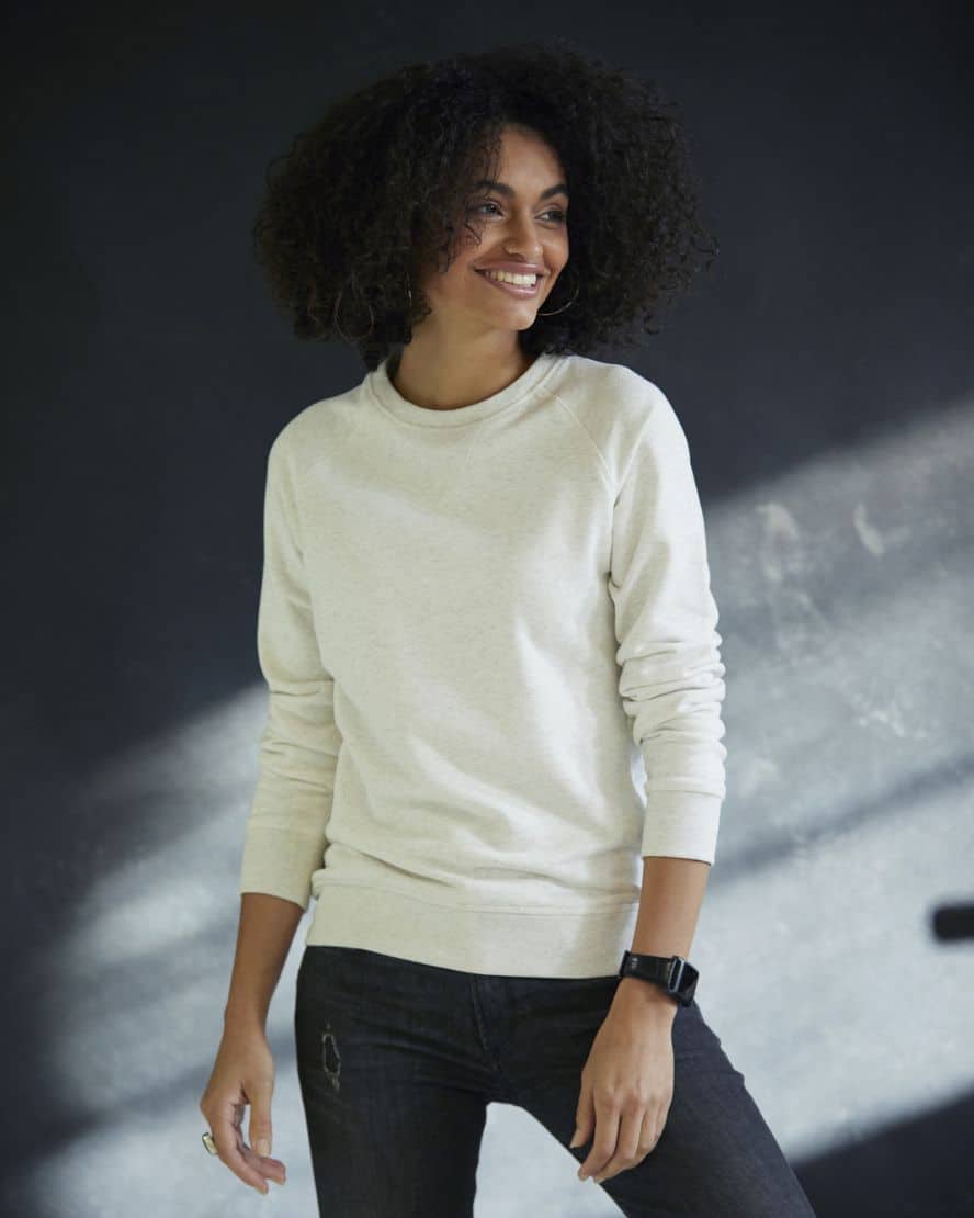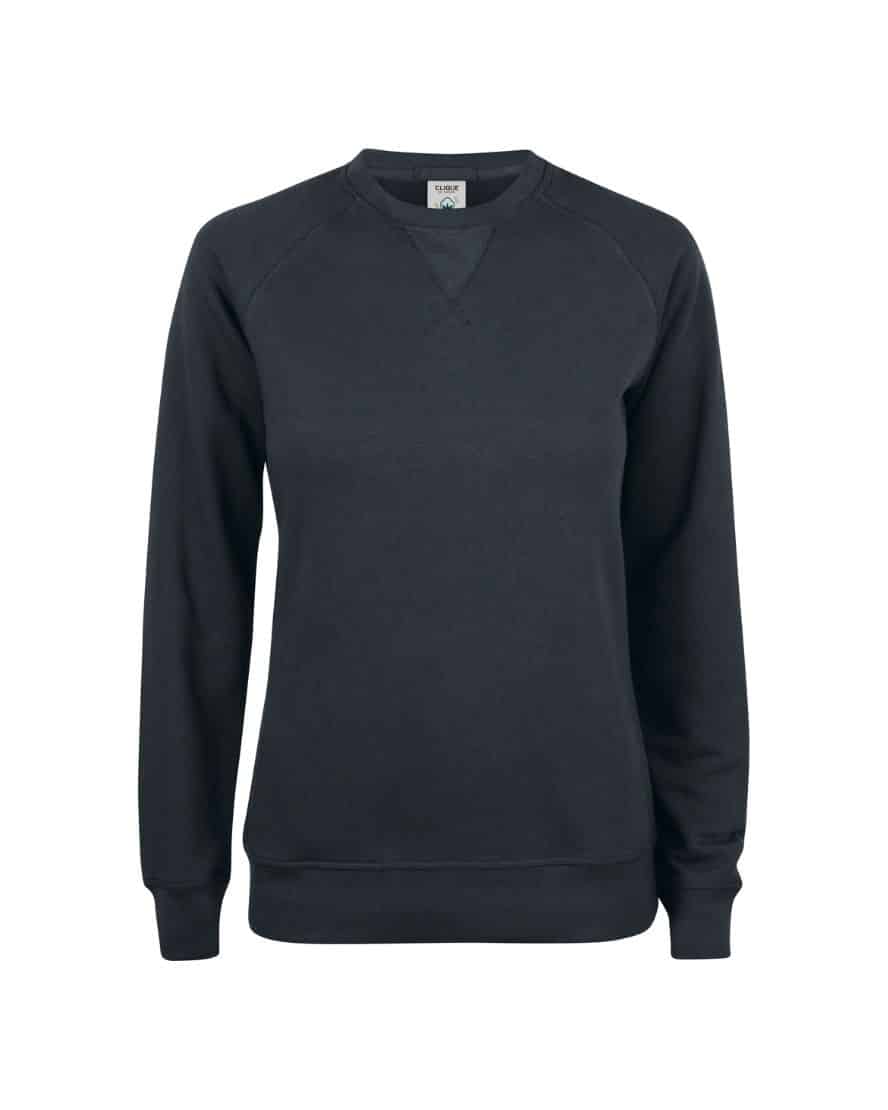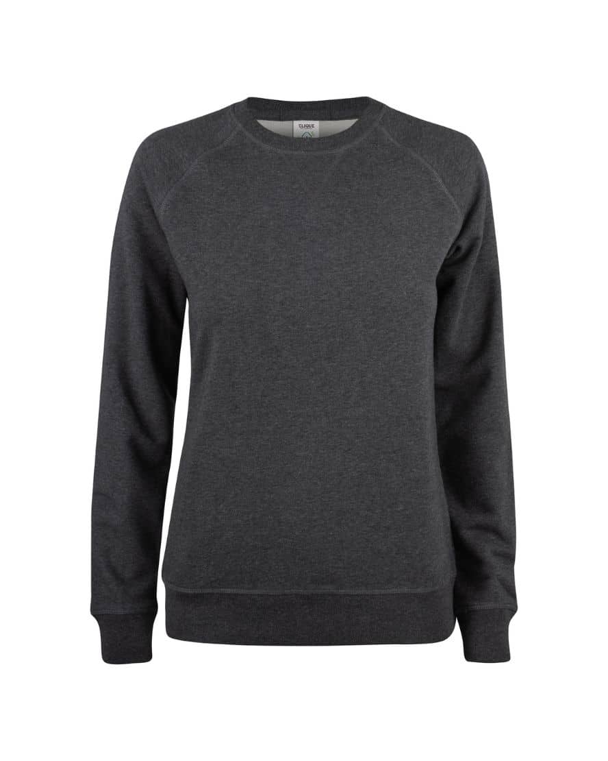 Clique 021001 Premium OC Roundneck Women. Luomupuuvillasta ja kierrätetystä polyesterisekoitteesta valmistettu laadukas collegepaita, jossa pyöreä kaula-aukko. Raglanhihat ja edessä flatlock-koristesaumat. Sivussa vetoketjullinen piilotasku. Collegeneulosta, harjaamaton sisäpuoli, vahvistettu niskasauma ja 1×1-resorit hihansuissa ja helmassa. Kätevä ratkaisu kuulokkeille.
