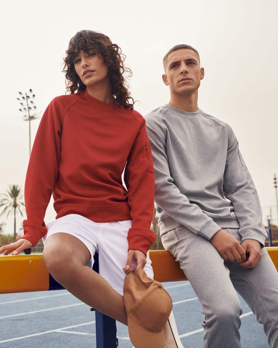 Clique 021010 Basic Active Roundneck. Lankavärjätty unisex-mallinen collegepaita, jossa pyöreä kaula-aukko. Raglanhihat ja hihatasku, jossa vetoketju sävy sävyyn. Vahvistettu niskasauma ja resori hihansuissa ja helmassa. Kätevä ratkaisu kuulokkeille.