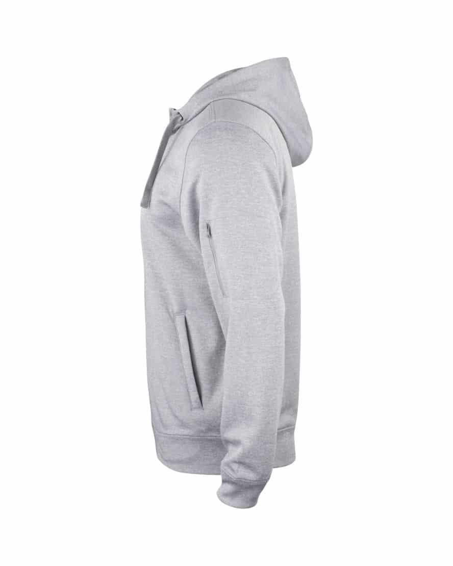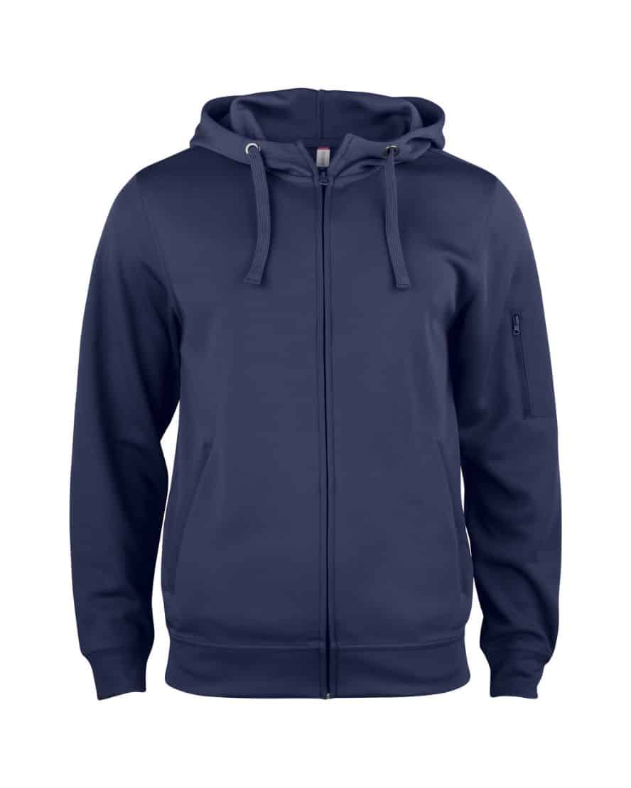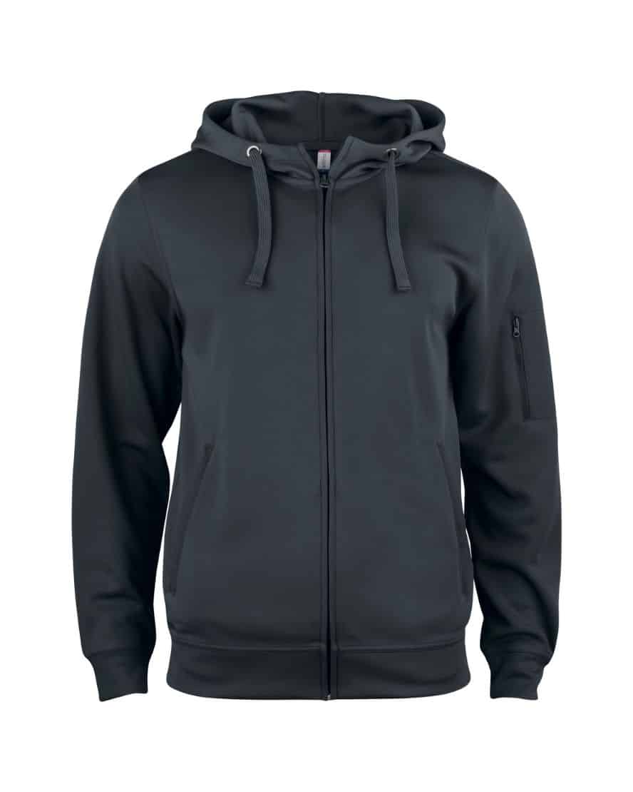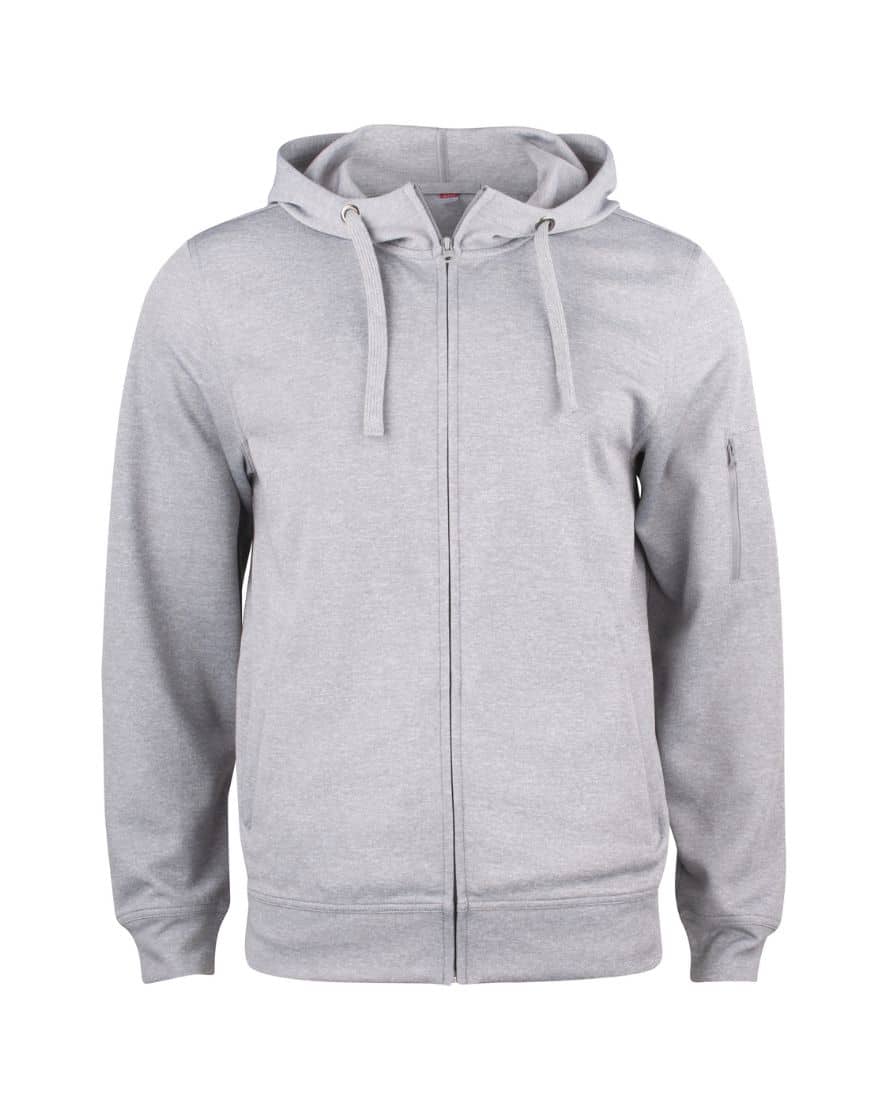 Clique 021014 Basic Active Hoody Full Zip. Lankavärjätty huppari, jossa täyspitkä vetoketju sävy sävyyn, kaksi vetoketjullista etutaskua ja vetoketjullinen hihatasku. Kiristysnauhalla varustettu huppu, vahvistettu niskasauma ja resori hihansuissa. Miesten hupparissa on resori helmassa. Kätevä ratkaisu kuulokkeille.