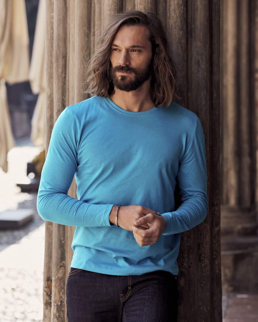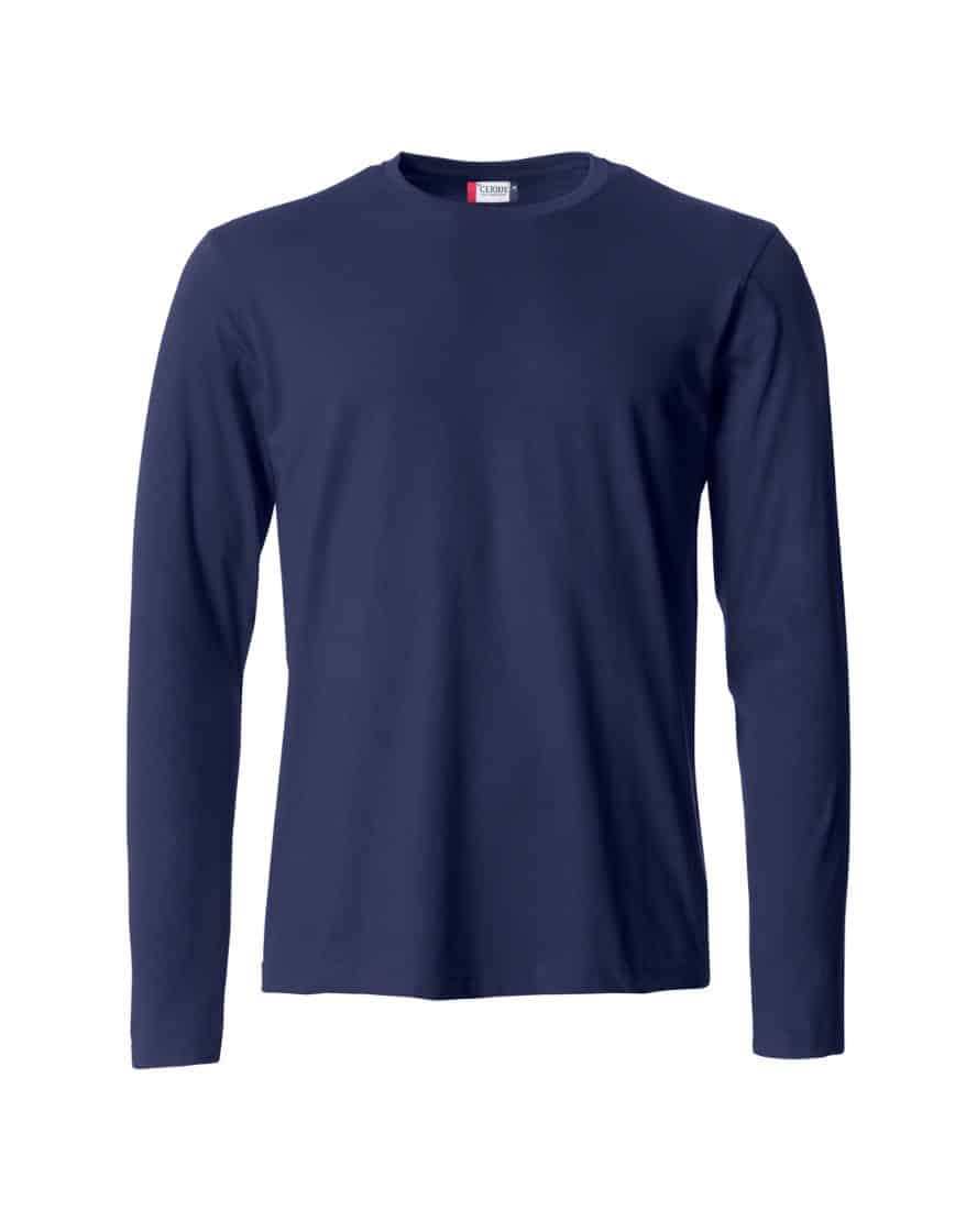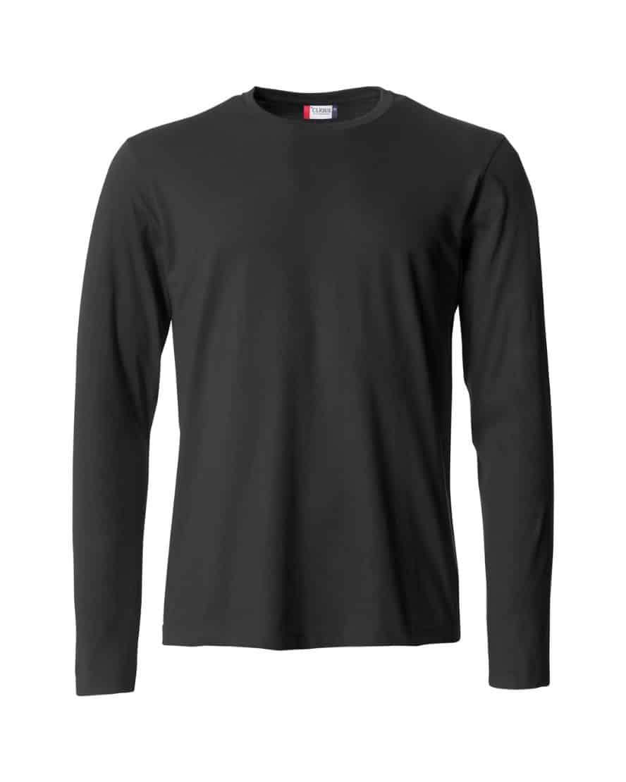 Clique 029033 Basic-T L/S. Pitkähihainen t-paita, kapeampi malli. Niskanauha ja joustava kaularesori. Miesten malli on saumaton, naisten mallissa on sivusaumat.
