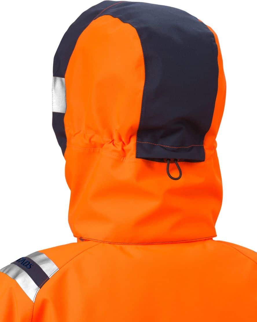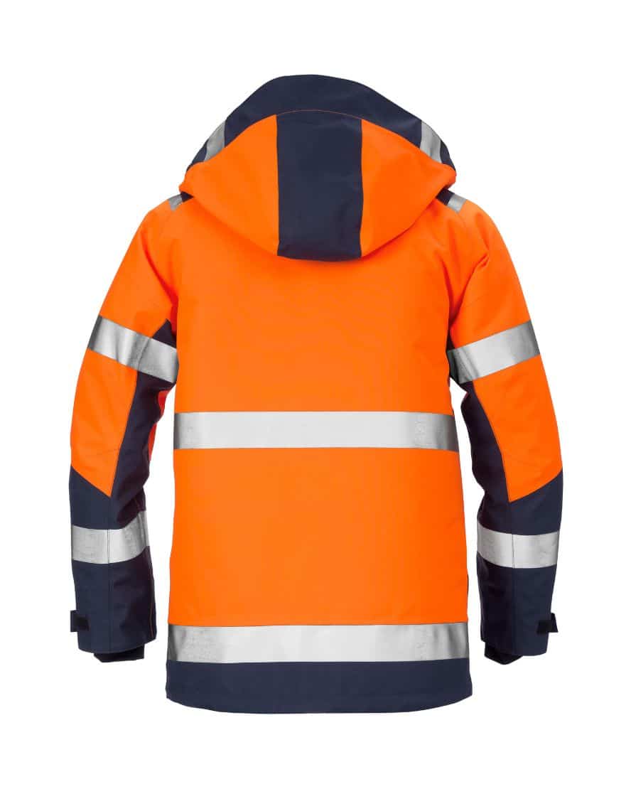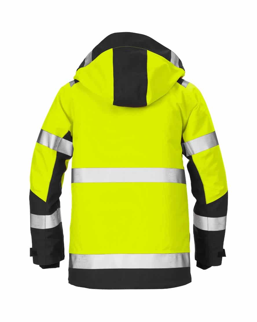 Kaksikerroksinen GORE-TEX, tuulen- ja vedenpitävä ja hengittävä. Irrotettava vuorillinen huppu, jossa kiristysnyöri. Kauluksessa fleecevuori. Heijastavat yksityiskohdat olkapäissä. Etulistan alla vetoketju kauluksen yläreunaan asti ja tarrakiinnitys. Rintatasku, jossa vettähylkivä vetoketju, D-rengas sisäpuolella. Karttatasku, jossa ulkoa käytettävissä oleva puhelinpovitasku. Kaksi läpällistä etutaskua ja vettähylkivät vetoketjut. Vetoketjullinen povitasku. Vuorissa vetoketju, joka helpottaa brodeerausta ja painamista. Säädettävä helma, jossa kiristysnyöri. Säädettävä hihansuun leveys. Joustavat sisähihansuut, joissa peukaloaukko. Vesipilari > 10 000 mm. ePTFE-kalvo. Hengittävyys RET < 6. Hyväksytty standardien EN ISO 20471 luokka 2 – koko XS – luokka 3 – koot S-3XL -, Väri 271 hyväksytty RIS-3279-TOM:2016 Issue 1 UK Railway Standard mukaisesti ja EN 343 3/3 mukaisesti. Hyväksynnät 25 pesun jälkeen. Testattu teollisen pesustandardin ISO 15797 mukaisesti. ÖKO-TEX® -sertifioitu.