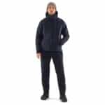 Päällikangas: 4-suuntaan joustava kalvollinen 2-kerrosmateriaali. 91% kierrätetty polyesteri, 9% elastaani. Vuorikangas: 100% polyesteri tikkivuori. Päällikangas 230 g/m². Vuorikangas 195 g/m², hihat 145 g/m².