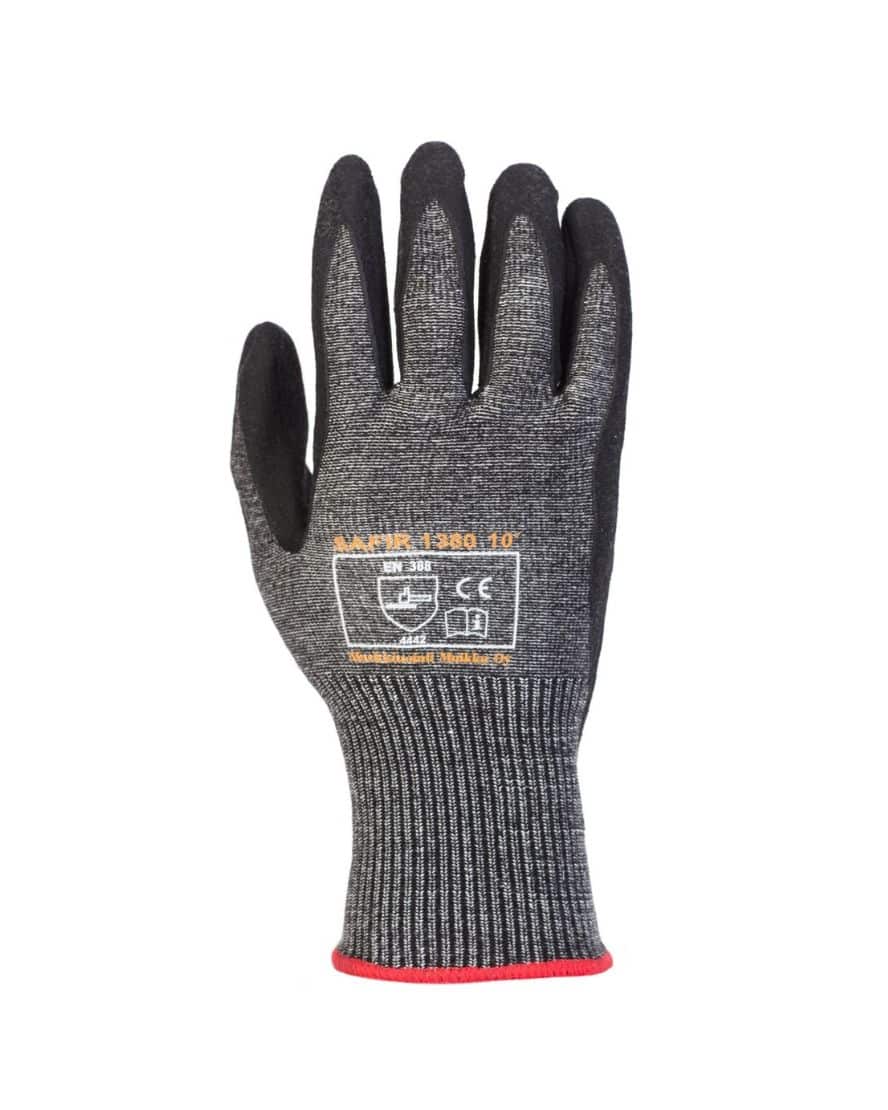 JM 1380 safir viiltosuojakäsine. Viiltosuojaluokka 4. Erittäin pehmeä ja joustava. Mikrofoam nitriilipinnoite kämmenessä. EN 388 – Cat.2.