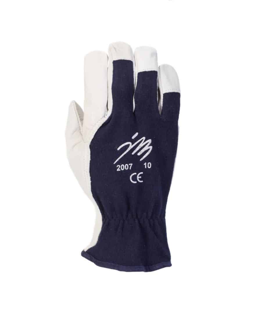 JM 2007 pukinnahkainen asentajankäsine, puuvilla selkämys. Puuvillainen joustoselkämys. EN 420.