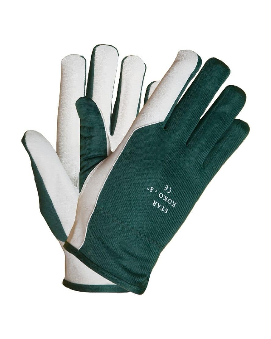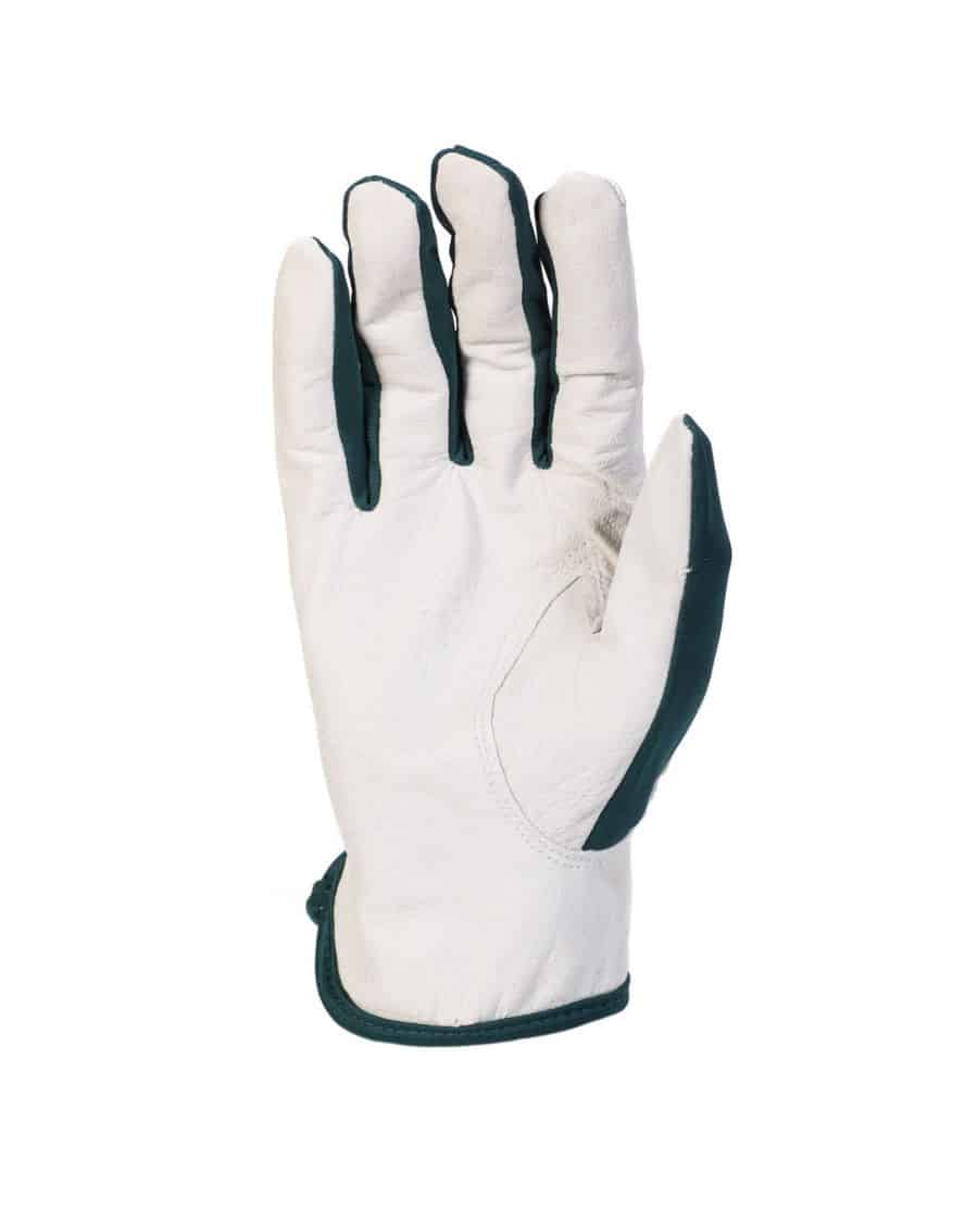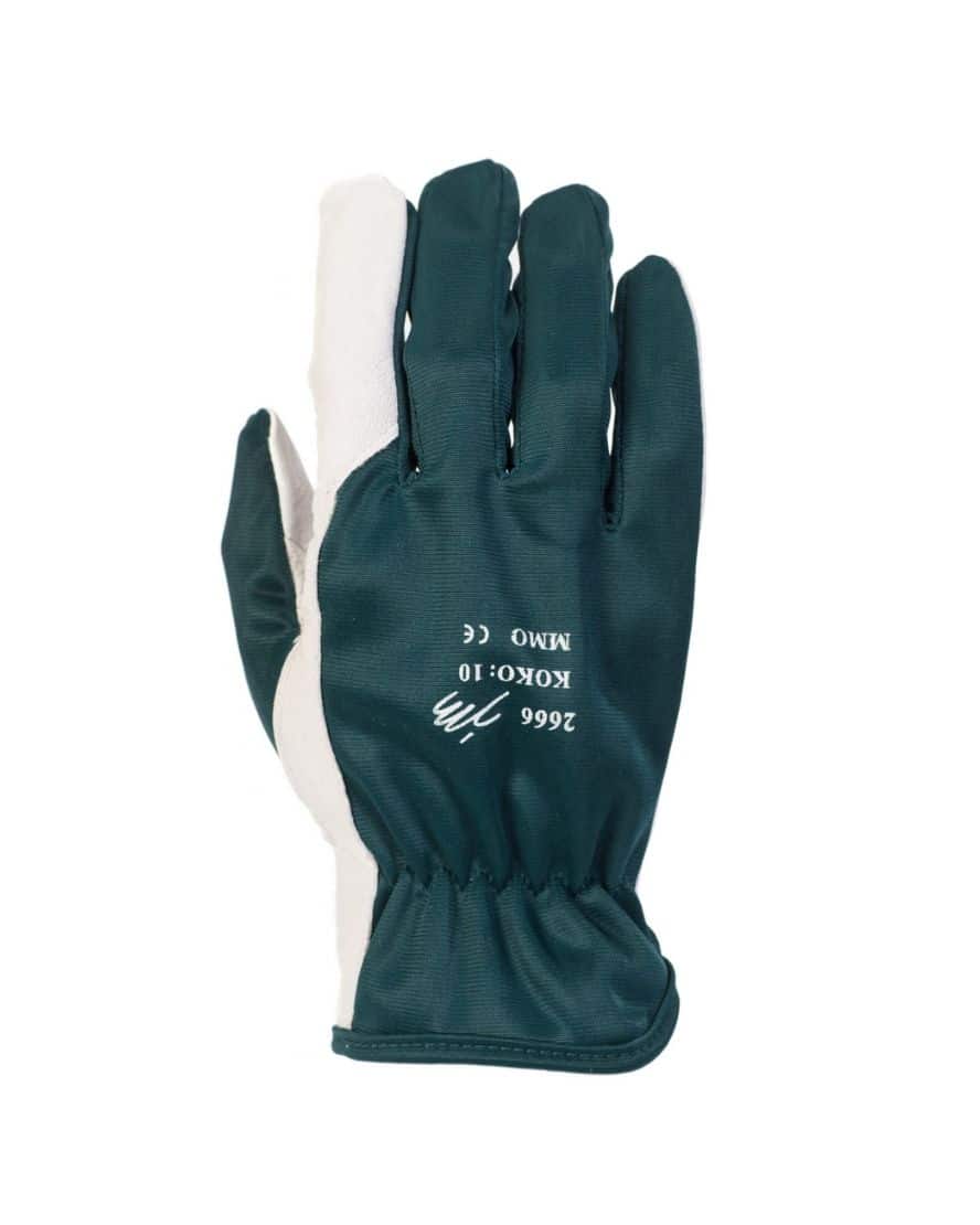 JM 2666 pukinnahkainen asentajankäsine. Kämmen pukinnahkaa selkämys polyesteriä (britex) koot 8-11. Vihreä britex selkämys. EN 420