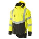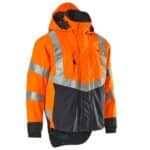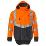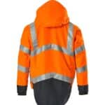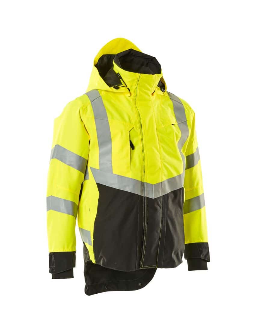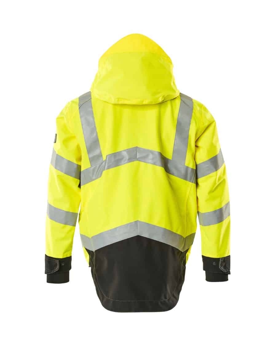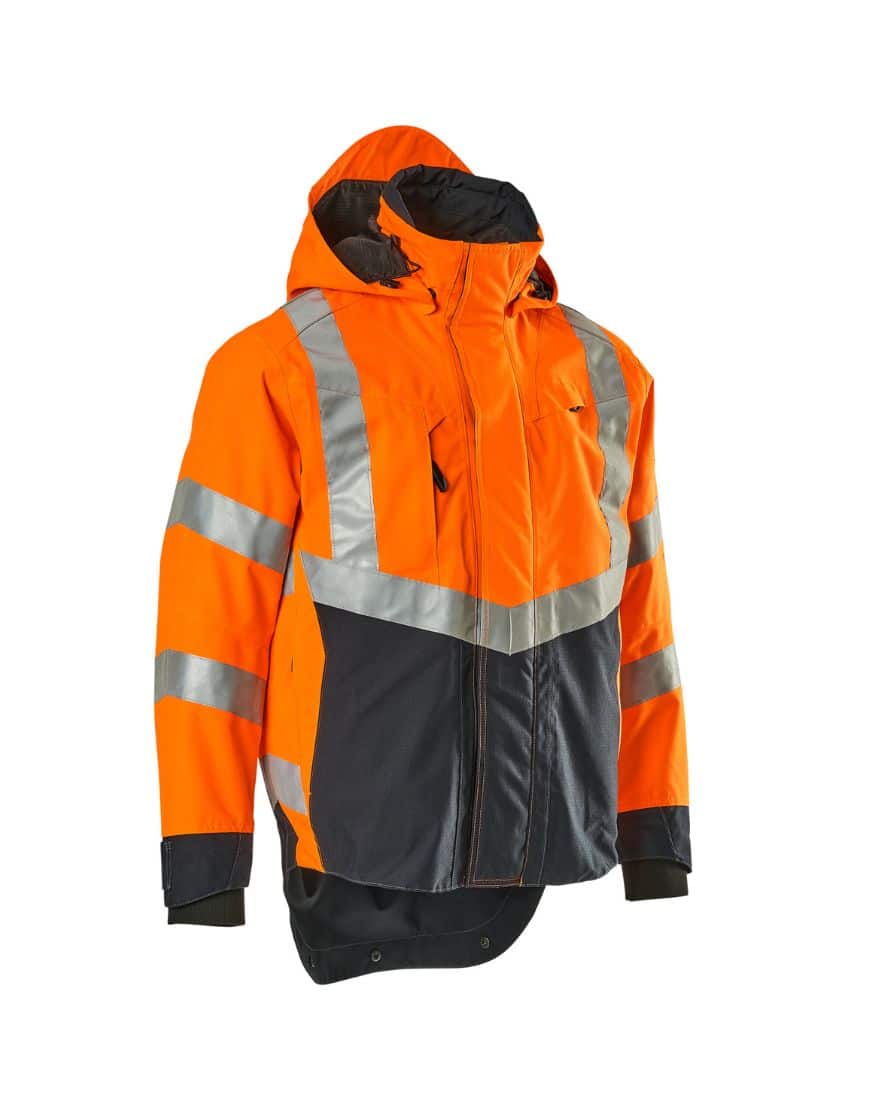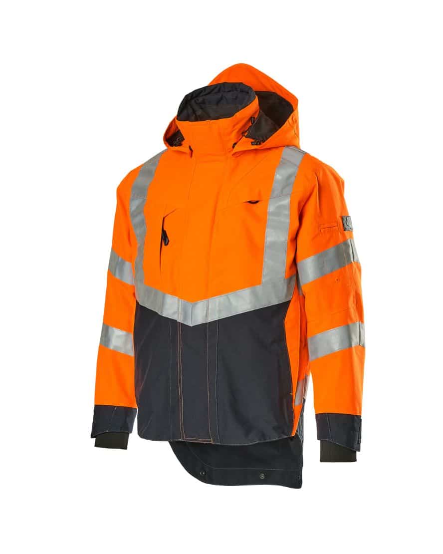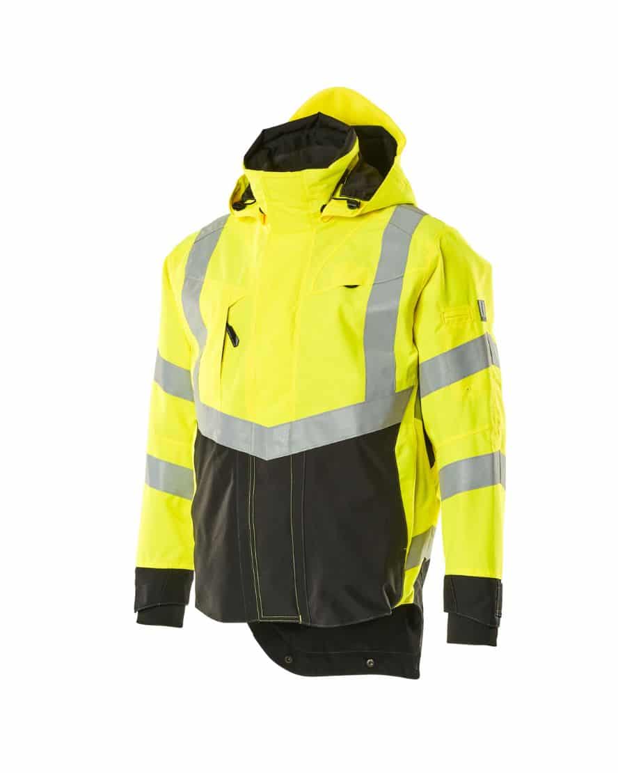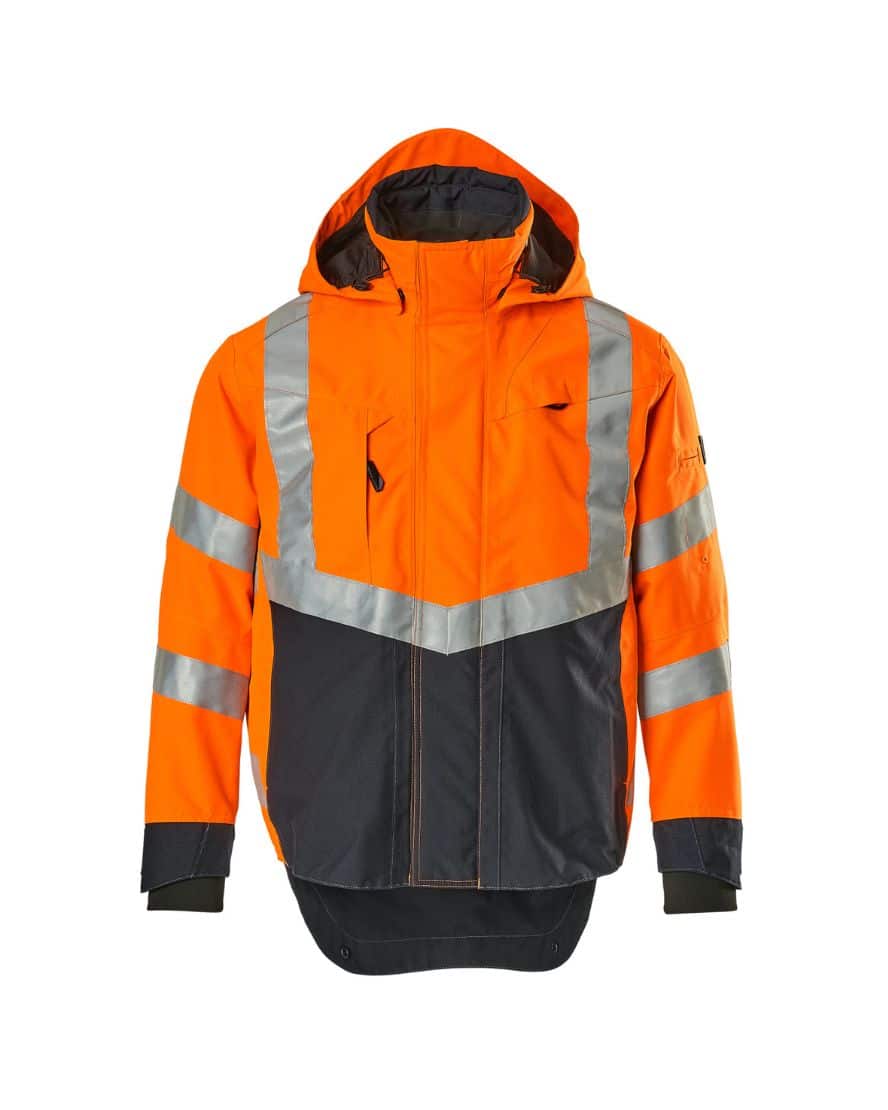 Mascot 15501-231 SAFE SUPREME kuoritakki. Fluoresoiva, pysty- ja vinoheijastimet. Kaksivärinen. Hengittävä, tuulen- ja vedenpitävä. Teipatut saumat. Verkkovuori. Irrotettava, vuorattu huppu, jonka voi säätää kypärän päälle sopivaksi säätönarulla. Säädettävä metallilanka hupun molemmilla sivuilla. Verkkotuuletusaukot hihojen alla, avataan vetoketjulla. Korkea kaulus. Sisäkaulus ribbineulosta.