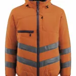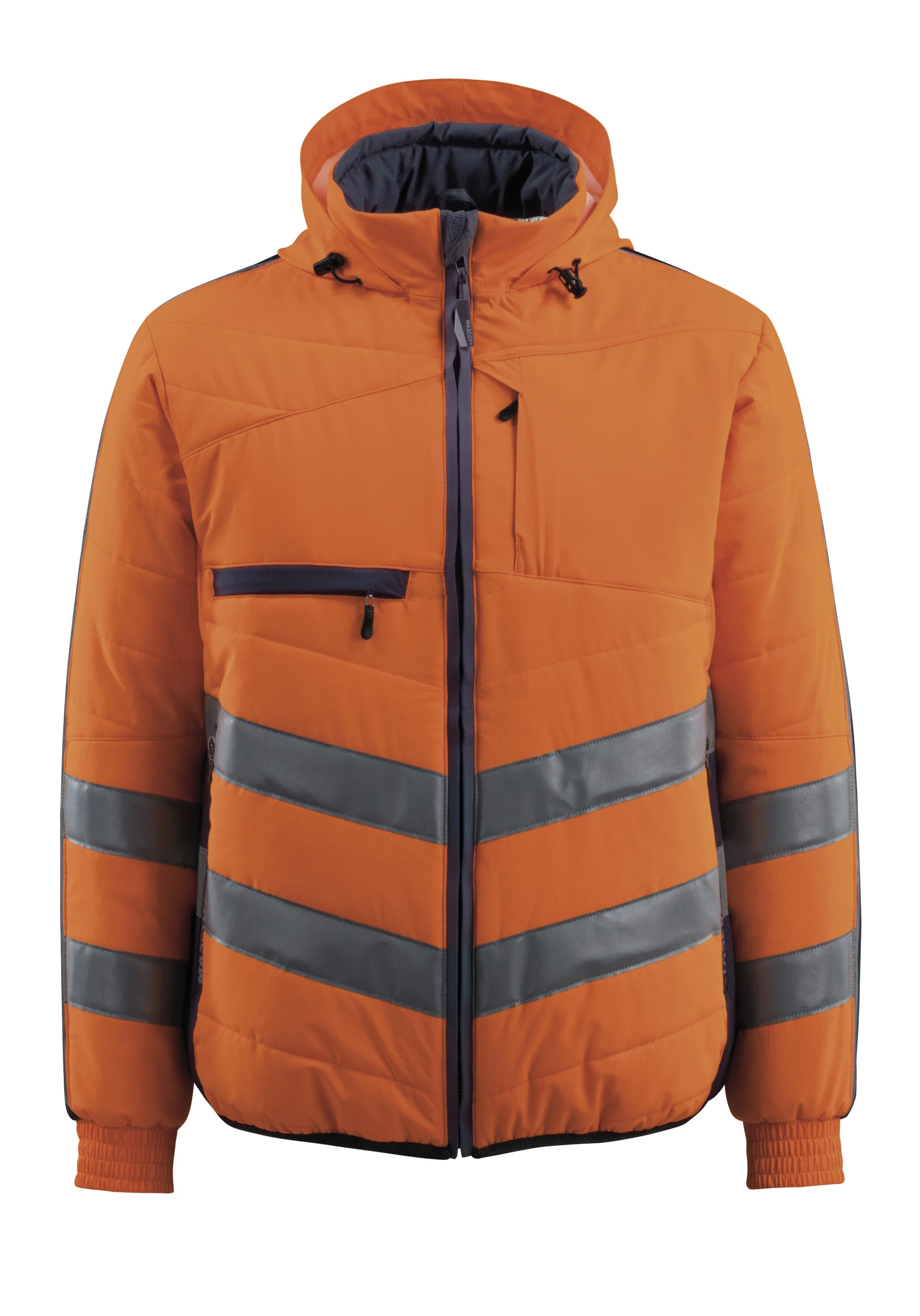 Mascot 15515-249 SAFE SUPREME takki. Fluoresoiva, vinoheijastimet. Kaksivärinen. Hengittävä, tuulenpitävä ja vettähylkivä. Polyesteritäyte. Vetoketjukiinnitys ja sisäpuolinen tuulilista. Hupun voi taittaa kauluksen sisään. Vetoketjulliset sisätaskut, jotka on muotoilu matkapuhelimelle ja joissa on aukot kuulokkeiden johdolle sekä johtopidike.