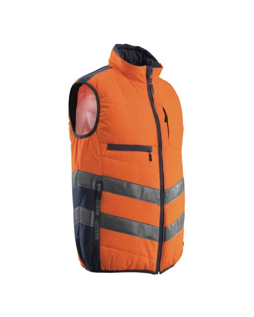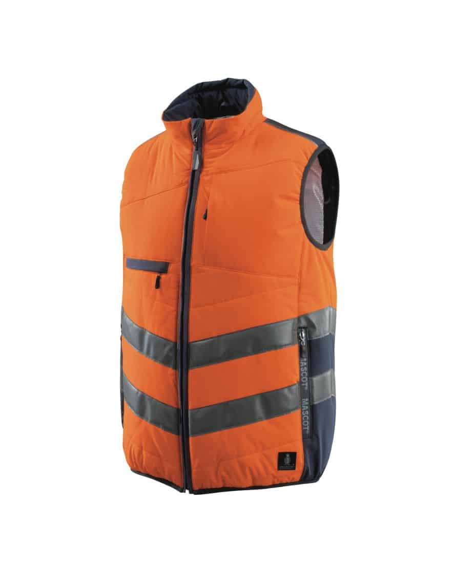 Mascot 15565-249 SAFE SUPREME talviliivi. Fluoresoiva, vinoheijastimet. Kaksivärinen. Hengittävä, tuulenpitävä ja vettähylkivä. Polyesteritäyte. Vetoketjukiinnitys ja sisäpuolinen tuulilista. Korkea kaulus. Vetoketjulliset sisätaskut, jotka on muotoilu matkapuhelimelle ja joissa on aukot kuulokkeiden johdolle sekä johtopidike. Vetoketjulliset rintataskut. D-lenkki. Vetoketjulliset etutaskut.