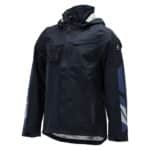 Hengittävä, tuulen- ja vedenpitävä. Teipatut saumat. Irrotettava vuorellinen huppu, säädettävä kiristysnyöri. Vetoketjukiinnitys ja sisäpuolinen tuulilista. Vetoketjullinen povitasku. Irrotettava ID-korttitasku. Vetoketjullinen rintatasku. Vetoketjulliset etutaskut. Helmassa säädettävä kiristysnauha. Hihat CORDURA®-vahvistuksella. Resori (piilotettu tuulilistassa) hihansuissa. Logolla ja heijastimilla. Oeko-Tex® Standard 100. EN 343 3/3.