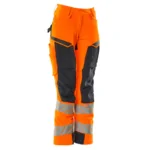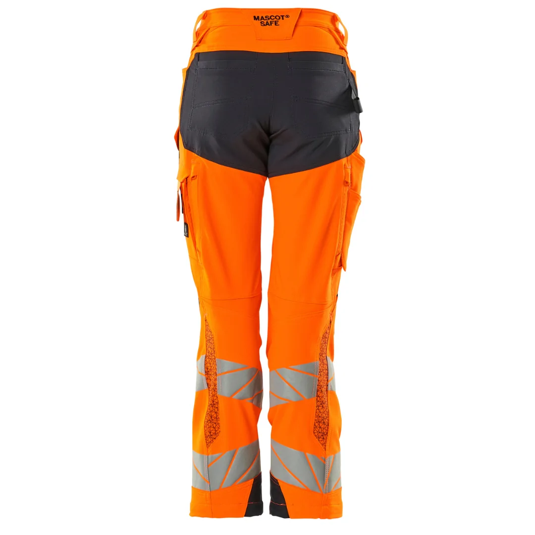 Mascot 19078-511 naisten housut polvitaskuilla. Lady ommeltu DIAMOND. Fluoresoiva, heijastimet. On käsitelty vettähylkiväksi. Kaksivärinen. ULTIMATE STRETCH joka on kevyttä ja kestävää. Kaksoistikatut saumat lahkeissa ja haaroissa. Piilotettu nappikiinnitys. Vetoketjukiinnitys. Vyölenkit. Ergonomisesti muotoillut lahkeet. Etutaskut. Vahvistetut takataskut. Piilotettu vasaralenkki oikealla puolella. Paikka riipputaskuille 19450-126 – kiinnitys napeilla.
