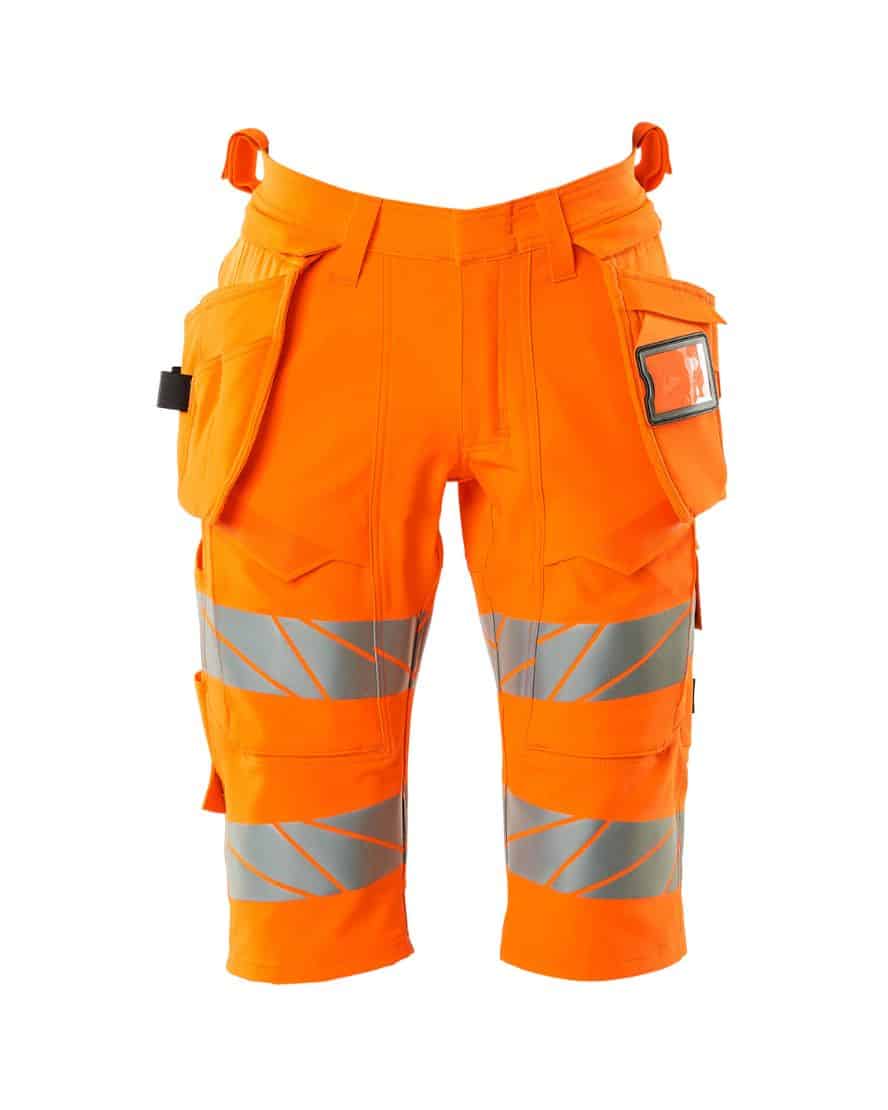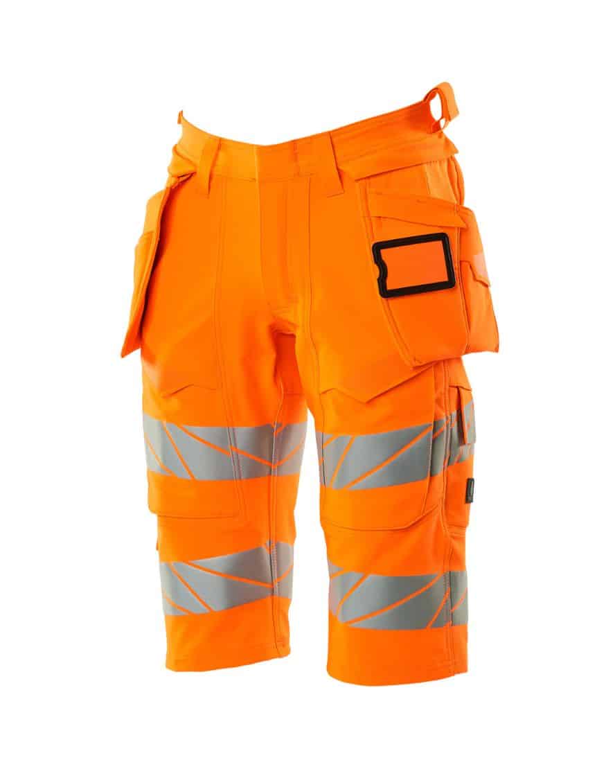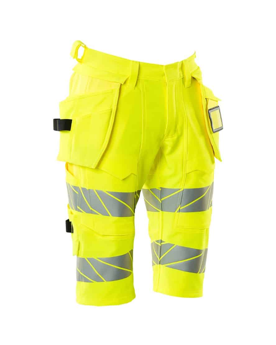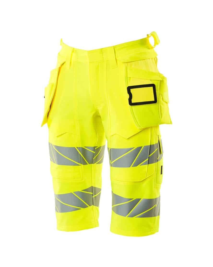 Mascot 19349-711 shortsit riipputaskuilla. Fluoresoiva, heijastimet. On käsitelty vettähylkiväksi. ULTIMATE STRETCH joka on kevyttä ja kestävää. Kaksoistikatut saumat lahkeissa ja haaroissa. Piilotettu nappikiinnitys. Irrotettavat riipputaskut. Sisemmässä riipputaskussa painonappikiinnitys. Riipputaskussa vuoritettu puhelintasku, magneettikiinnitys ja integroidulla ID-korttipidikkeellä. Irrotettava ID-korttitasku.