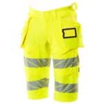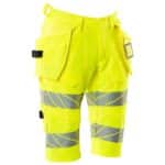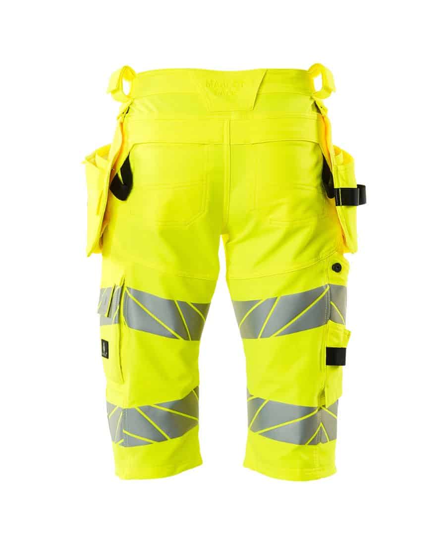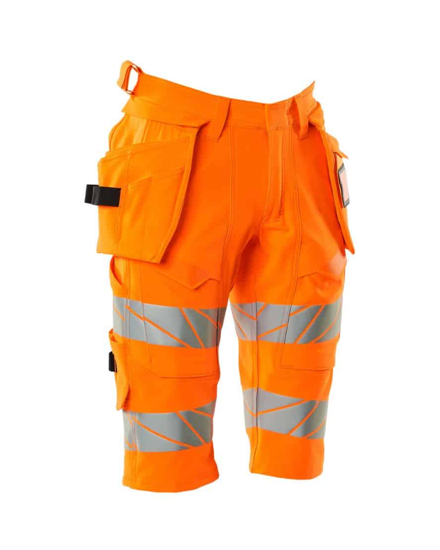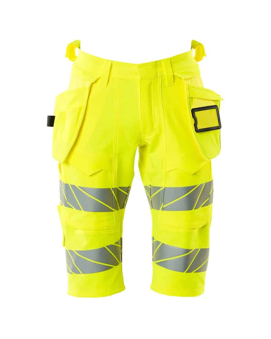 Mascot 19349-711 shortsit riipputaskuilla. Fluoresoiva, heijastimet. On käsitelty vettähylkiväksi. ULTIMATE STRETCH joka on kevyttä ja kestävää. Kaksoistikatut saumat lahkeissa ja haaroissa. Piilotettu nappikiinnitys. Irrotettavat riipputaskut. Sisemmässä riipputaskussa painonappikiinnitys. Riipputaskussa vuoritettu puhelintasku, magneettikiinnitys ja integroidulla ID-korttipidikkeellä. Irrotettava ID-korttitasku.