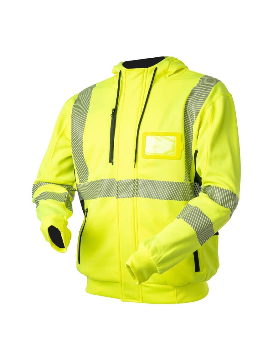 Priha 4323 highvis huppari. EN 20471:2013 Lk.2. 3 taskua, vetoketjulliset sivutaskut, rintatasku ja henkilökorttitasku. Katkoheijastimet antavat erinomaisen joustavuuden. Resori vyötärössä ja hihansuissa. Kiinteä huppu