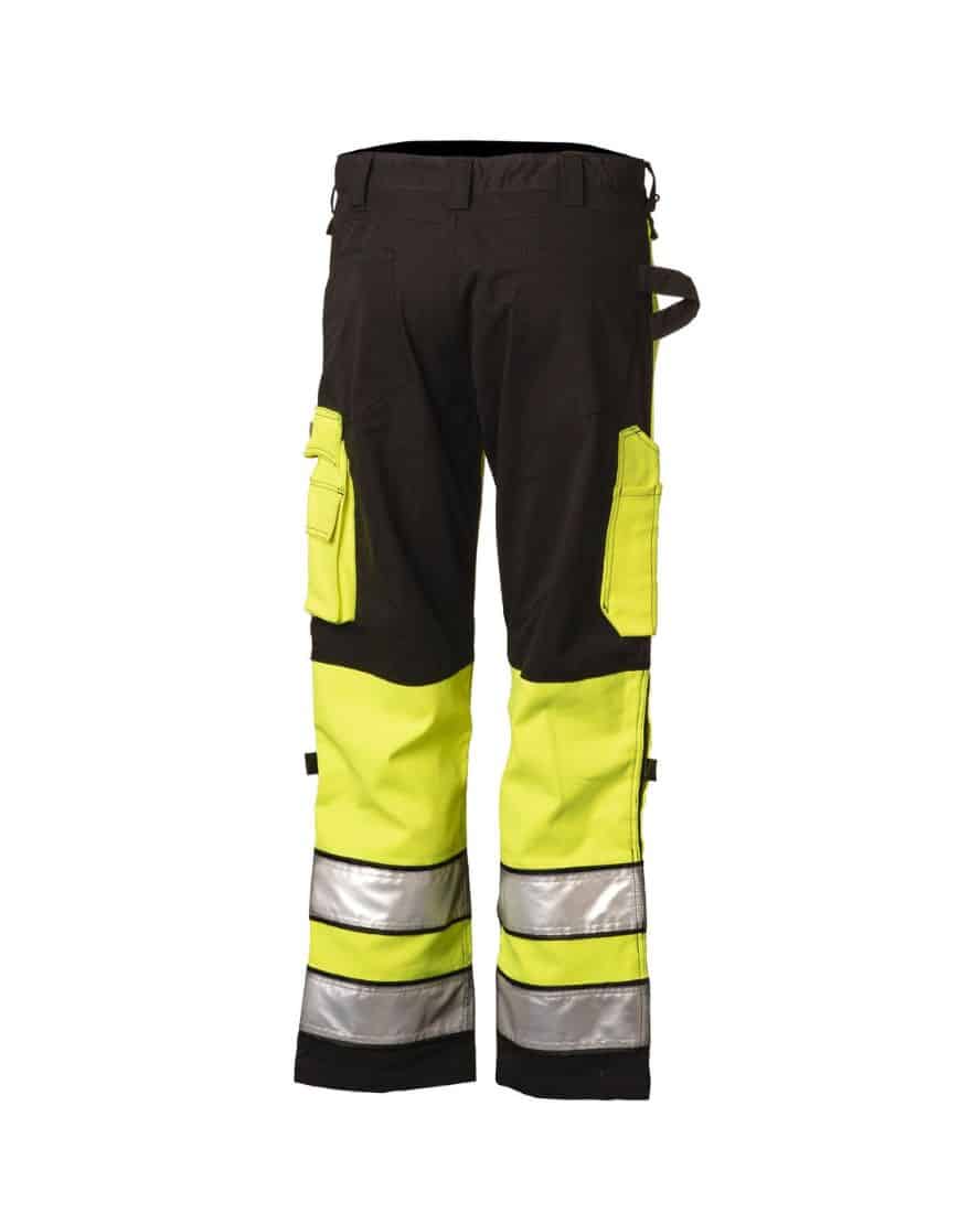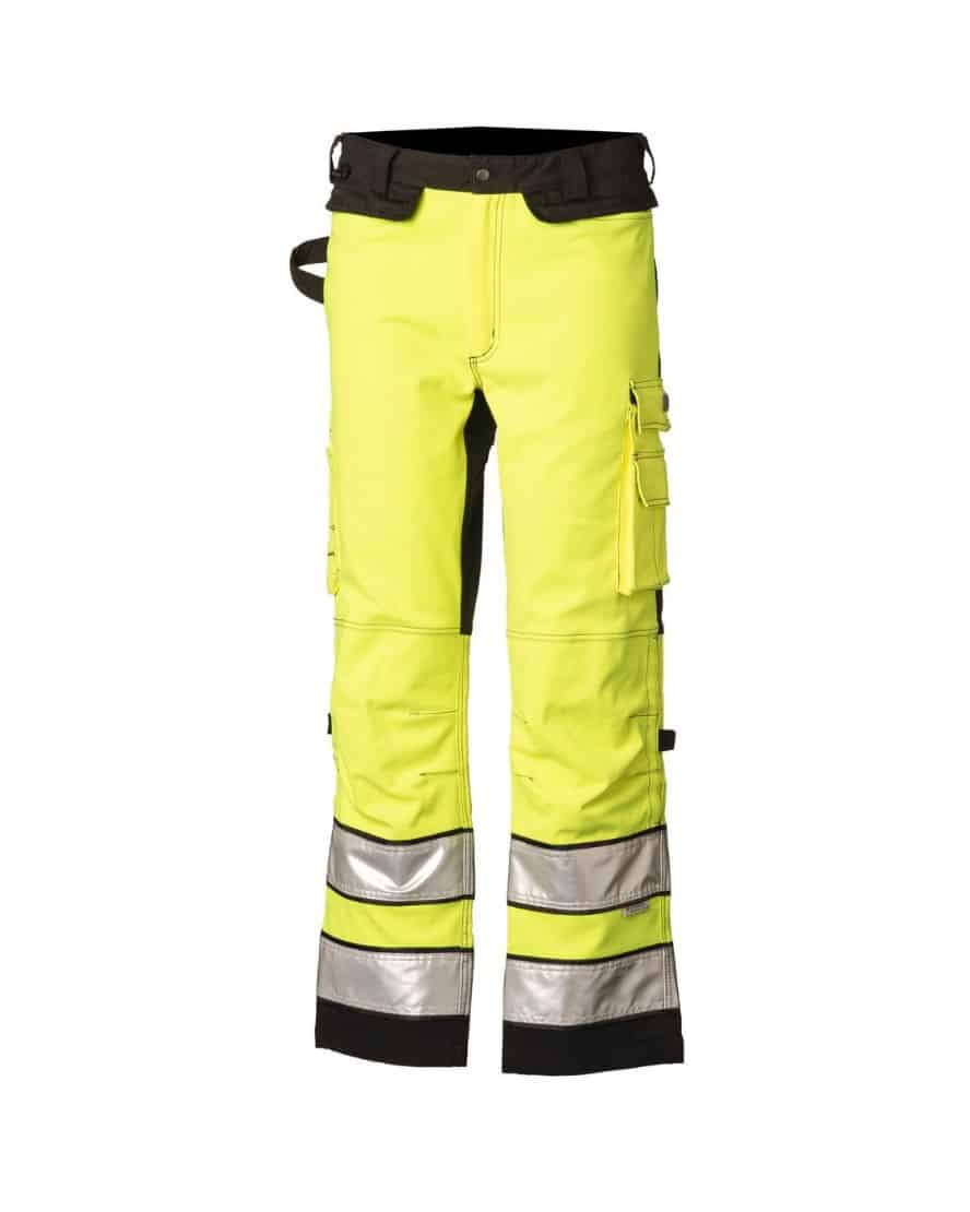 Priha 4350 Hi-Vis STRETCH riipputaskuhousu. EN ISO 20471:2013 Lk 2 (koot 44-50 luokka 1) – Erittäin joustavat, miellyttävät ja hengittävät housut – 16 taskua: vahvistettu, vetoketjullinen ja läpällinen reisitasku, takataskut,tilavat IRROTETTAVAT riipputaskut, joista toisessa ID-korttitasku, kännykkätasku, mittatasku, kynätaskuja, vasara-, ja muita lenkkejä – sivustaladattavat polvisuojatasku – leveät vyölenkit – vyötärössä paitajarru