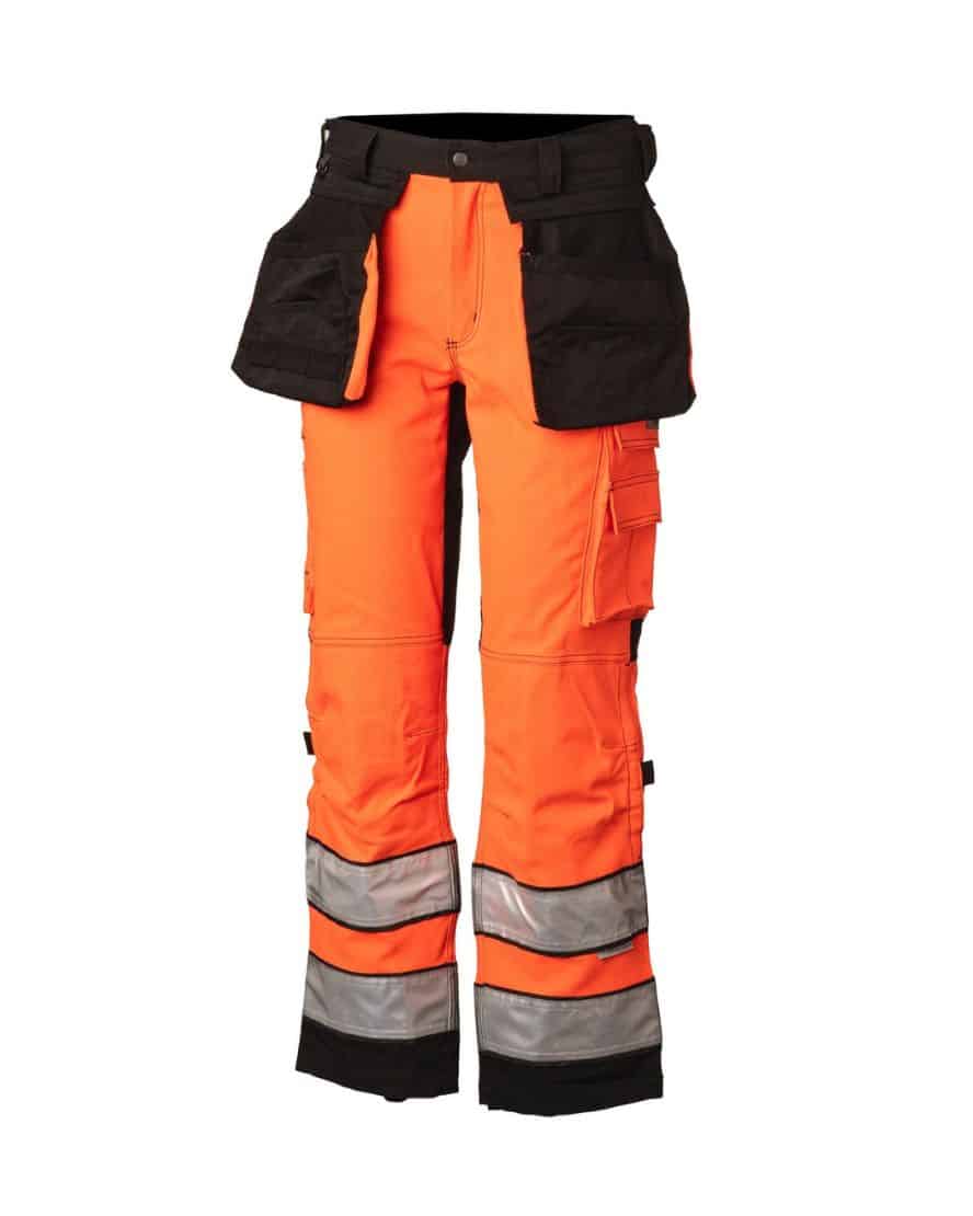 Priha 4352 Hi-Vis STRETCH riipputaskuhousu. EN ISO 20471:2013 Lk 2 (koot 46-50 luokka 1). Erittäin joustavat, miellyttävät ja hengittävät housut. 16 taskua: vahvistettu, vetoketjullinen ja läpällinen reisitasku, takataskut,tilavat IRROTETTAVAT riipputaskut, joista toisessa ID-korttitasku, kännykkätasku, mittatasku, kynätaskuja, vasara-, ja muita lenkkejä. Sivustaladattavat polvisuojatasku. Leveät vyölenkit. Vyötärössä paitajarru.
