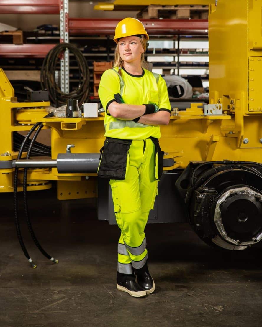 Kevyt 185 g/m² kangas tuntuu ilmavalta ja miellyttävältä koko päivän. Musta terekangas kauluksessa pitää lian piilossa ja ilmeen siistinä. KATKOPRINTTI-heijastimet joustavat liikkeidesi mukana – et edes huomaa niitä päälläsi, mutta muut kyllä huomaavat sinut. Käytännöllinen henkilökorttitasku pitää tärkeimmät tiedot helposti saatavilla.