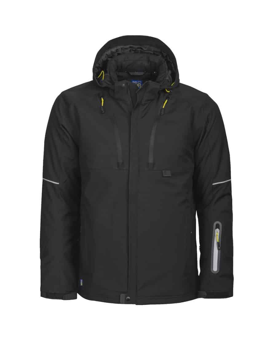 Projob 3407 tekninen talvitakki. Tekninen softshell-takki, joka suojaa tuulelta ja sateelta. Tikattu toppavuori. Kaksi rintataskua, joista vasemmassa puhelintasku. Povitaskussa reikä puhelinkuulokejohdolle. Kaksi vetoketjullista sisätaskua, joista suurempaan mahtuvat esim. paperit. Kaksi sivutaskua. Hihatasku vasemmalla puolella. Ilmanvaihtoa parantavat vetoketjut kainaloissa. Säädettävät hihansuut ja vyötärö. Pidennetty selkäosa. Heijastinnauha hihoissa ja hupussa. Säädettä ja irroitettava huppu.