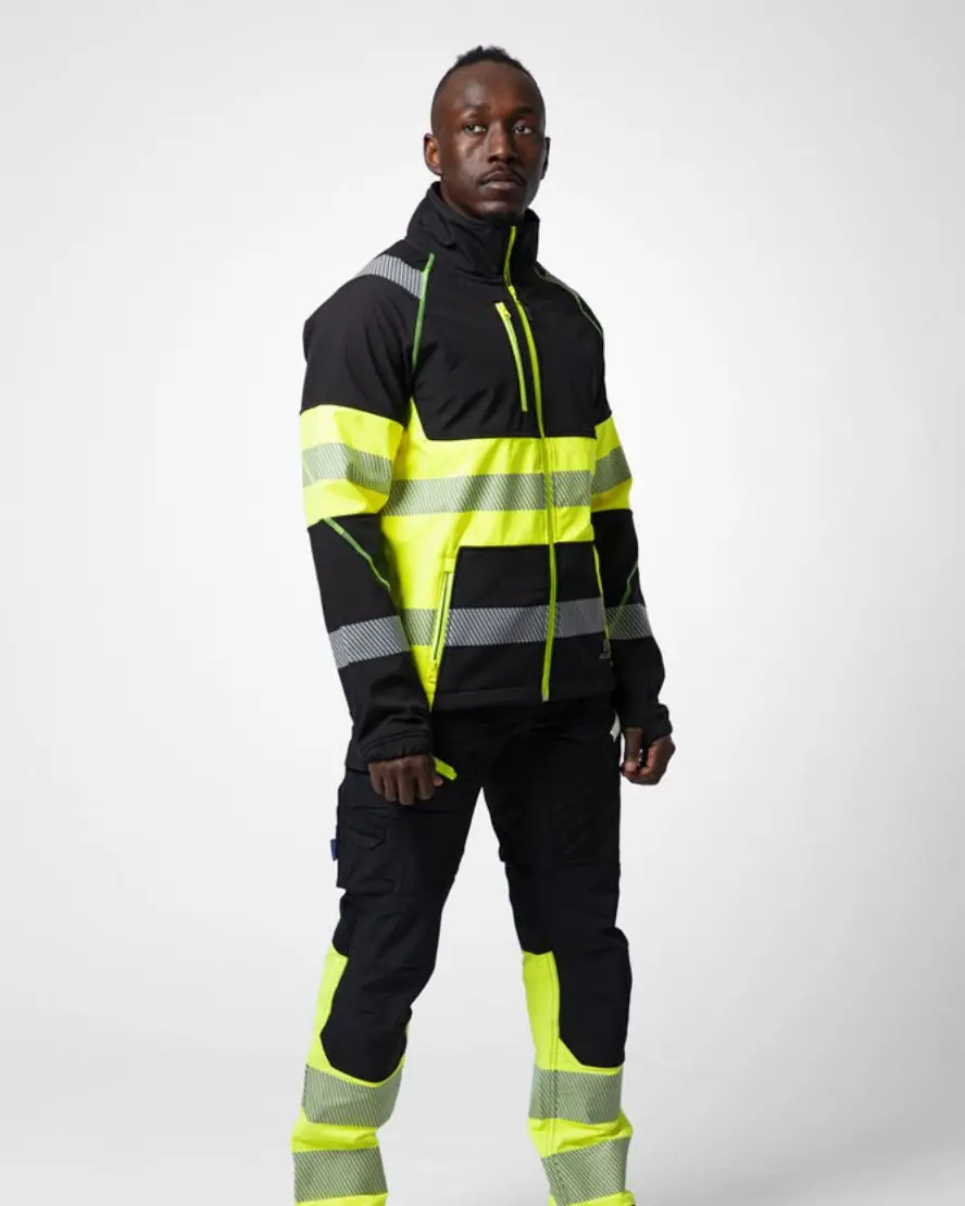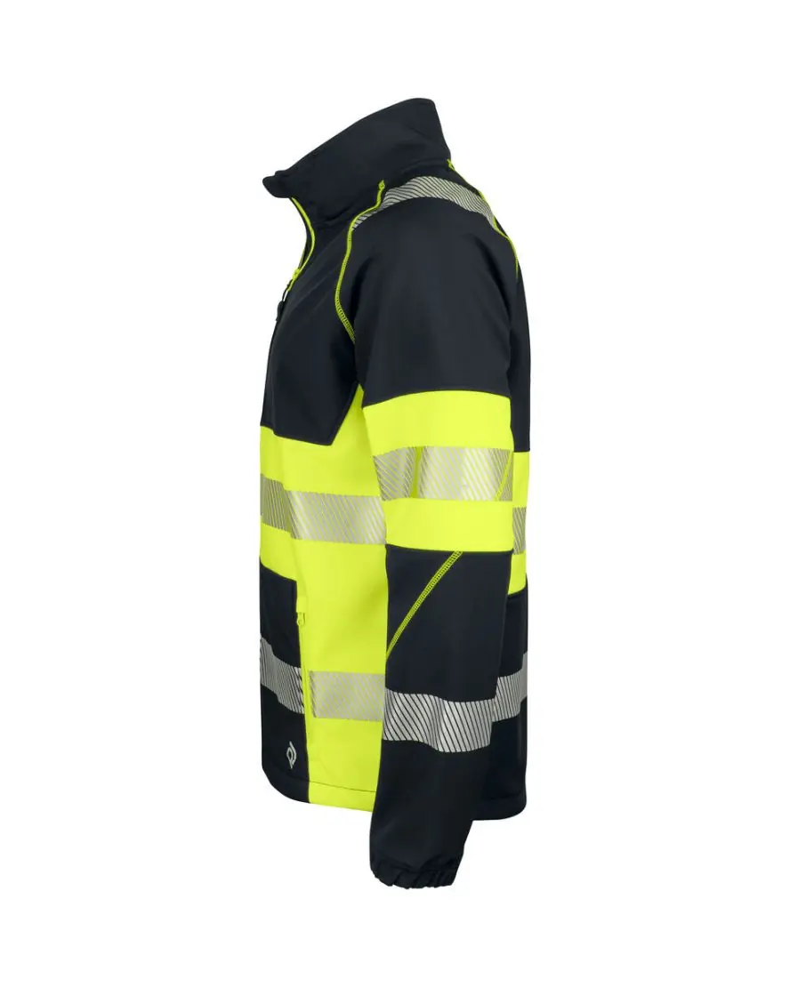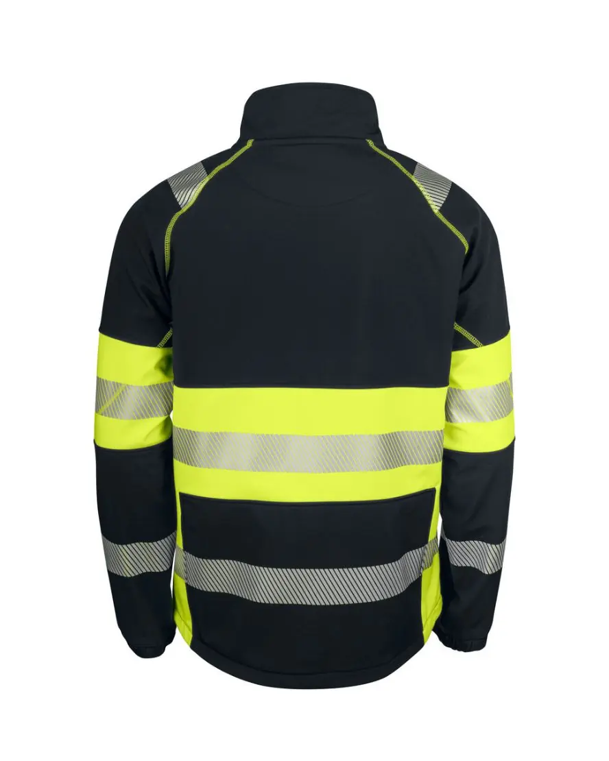Projob softshell huomiotakki luokka 1. Hyvin hengittävä softshell-takki. Tuulilista ja leukaa suojaava vetoketjusuoja. Vetoketjulliset sivutaskut. Painetut heijastimet eivät rajoita käyttömukavuutta.