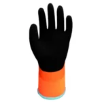 Wonder Grip 338 Thermo Plus suojakäsine, 12 kpl. Yksikerroksinen harjattu akryylivuori lisää eristystä ja suojaa kylmältä. Kylmänkestävä ja nesteenpitävä lateksipinnoite tarjoaa vertaansa vailla olevan mukavuuden, näppäryyden ja taipuisuuden ylittäen alan standardit. Huomio-oranssi varmistaa käyttäjän käsien näkyvyyden ja lisää turvallisuutta työpisteessä. Pehmeä mutta vahva tekninen vuori on suunniteltu tarjoamaan suojaa kylmältä ja kuumalta.