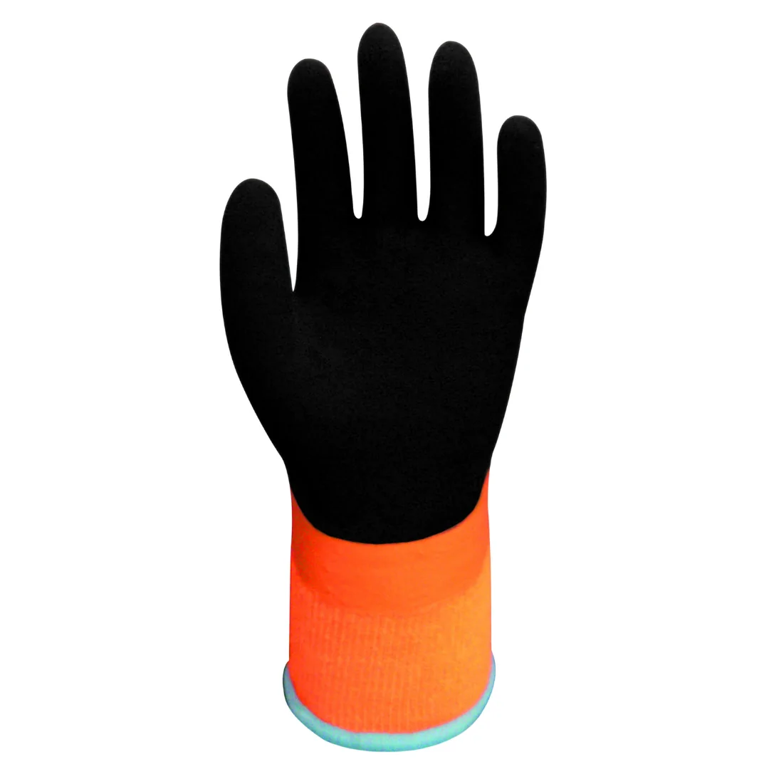 WG-338 Thermo Plus on kaksinkertaisella lateksipinnoitteella kokonaan päällystetty käsine, ja se on valmistettu 13G neuletiheyden akryylivuoren päälle. Wonder Grip Technology™-pinnoitteen ansiosta käyttäjä saa hyvän otteen ja suojauksen kuivassa ja märässä ympäristössä. WG-338 on suunniteltu tarjoamaan kaksoissuojauksen: kylmäsuojaus ja 100 % vesitiiviys. Se on täydellinen valinta käyttäjille, jotka etsivät käsinettä, joka tarjoaa notkeutta myös pakkasessa.