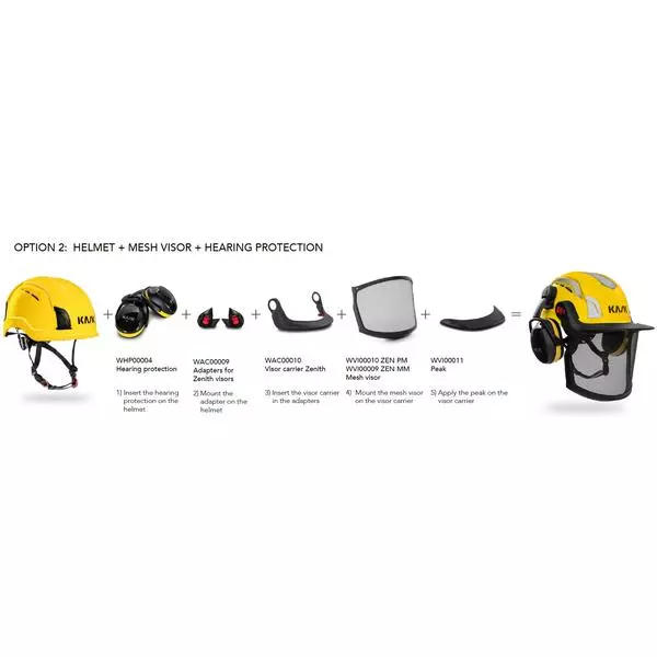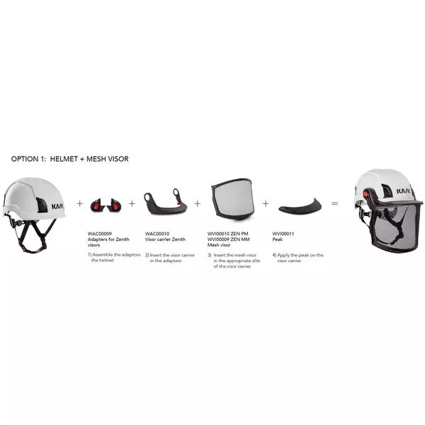 Zenith Visor Adapters pari. EasyClick visiirikiinnikkeet. Pikakiinnikepari silmiensuojaimen, kokokasvosuojaimen tai verkkoviisiirin kiinnittämiseksi Kask Zenith -sarjan työkypäriin.